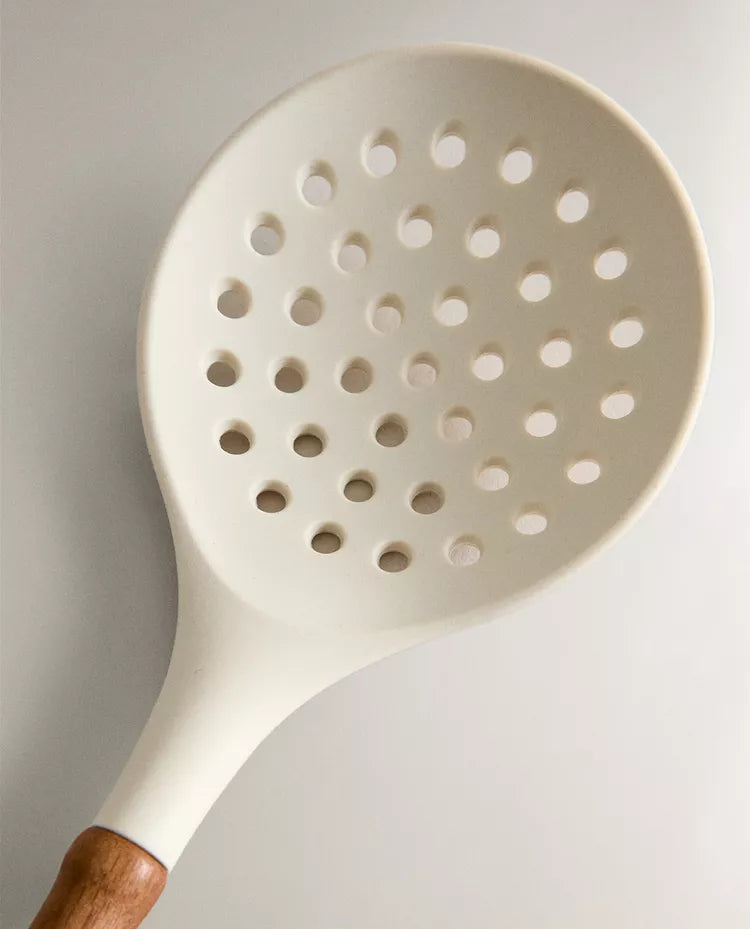 Espumadeira de silicone branco com cabo de madeira de acácia.Recomenda-se evitar o uso da máquina de lavar louça. Por ser... Read more