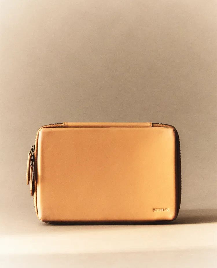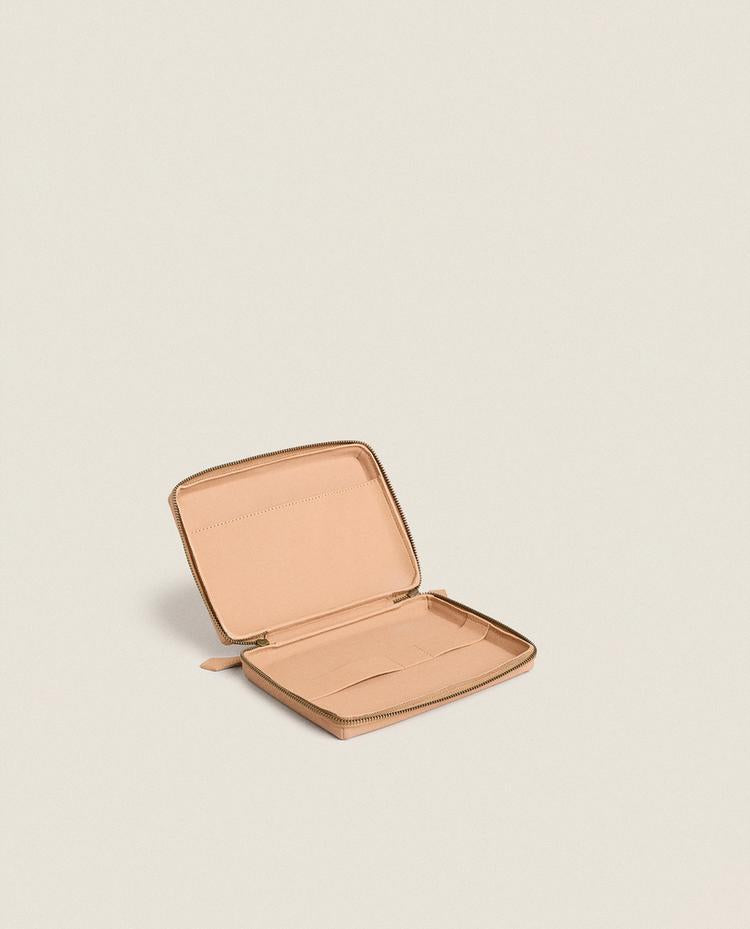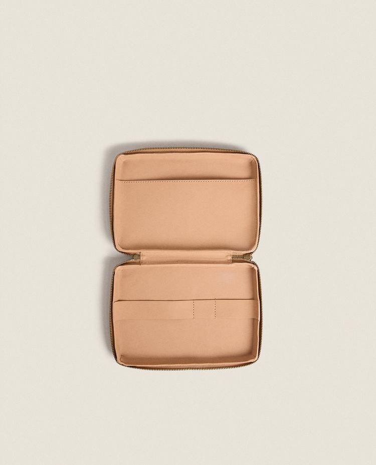 Estojo porta-objetos de pele com fecho de correr duplo. Interior com bolso lateral e tira organizadora. Altura Largura Profundidade 19.34cm... Read more
