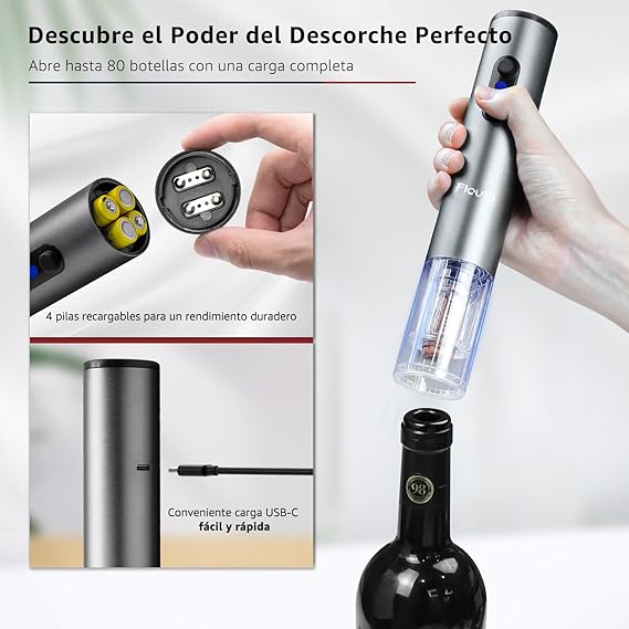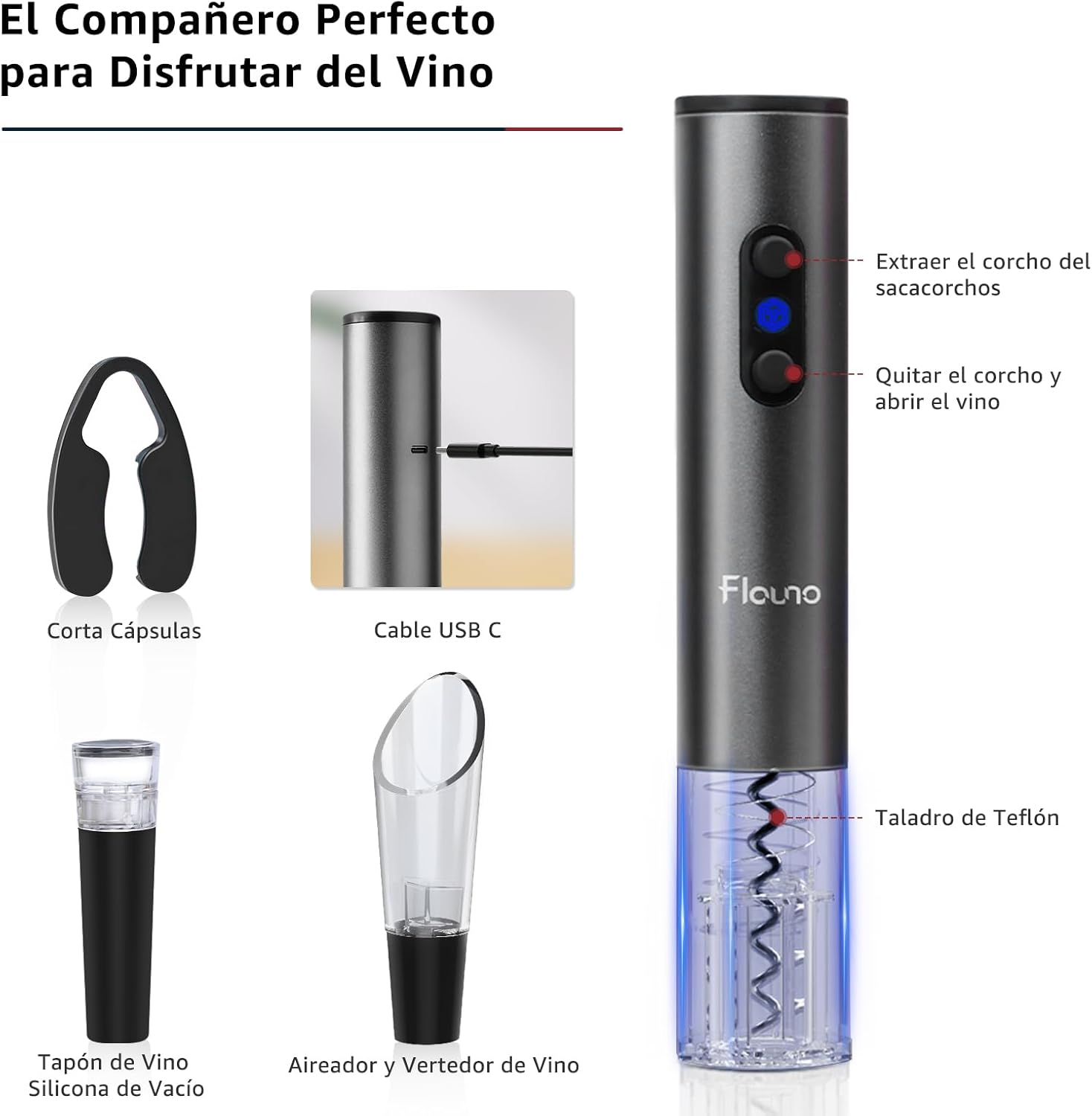 Flauno Saca-rolhas elétrico recarregável 6 em 1