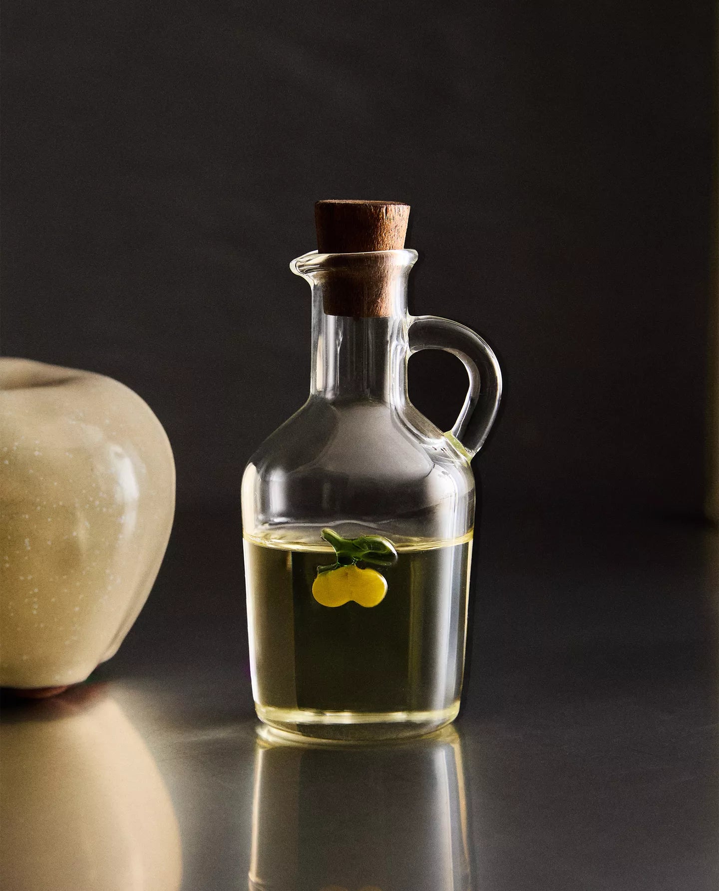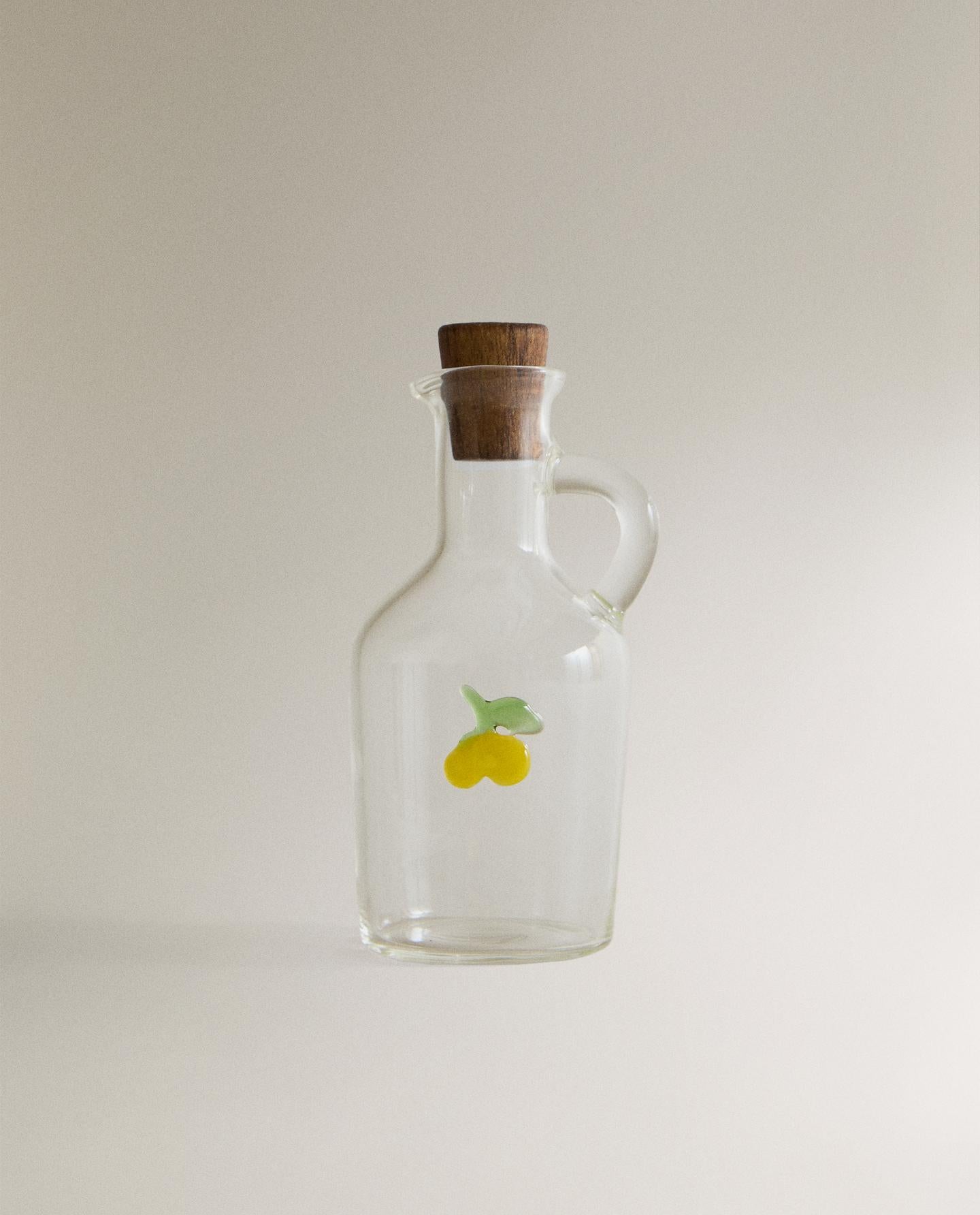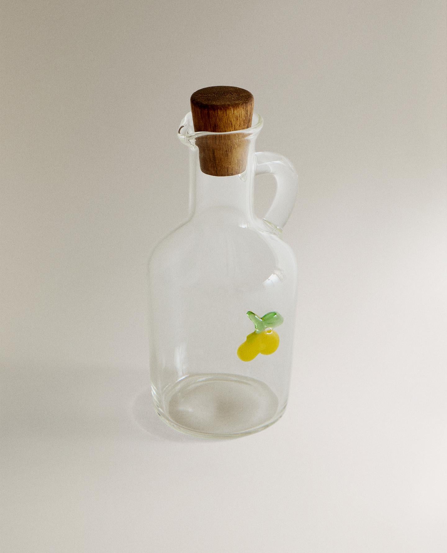 Galheta de azeite de vidro com uma fruta na parte posterior.Contém uma tampa de cortiça. Capacidade: 100 ml Altura Largura Profundidade... Read more
