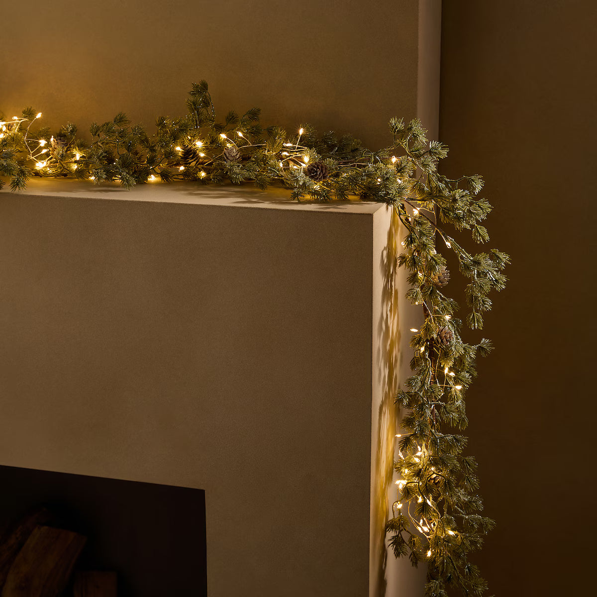 Guirnalda decorativa Rama con 120 luces LED Navidad Guirlanda decorativa com um ramo verde adornado com pinhas e 120 pequenas... Read more