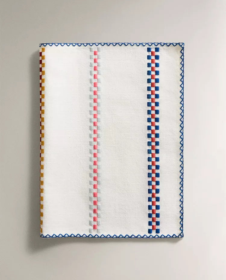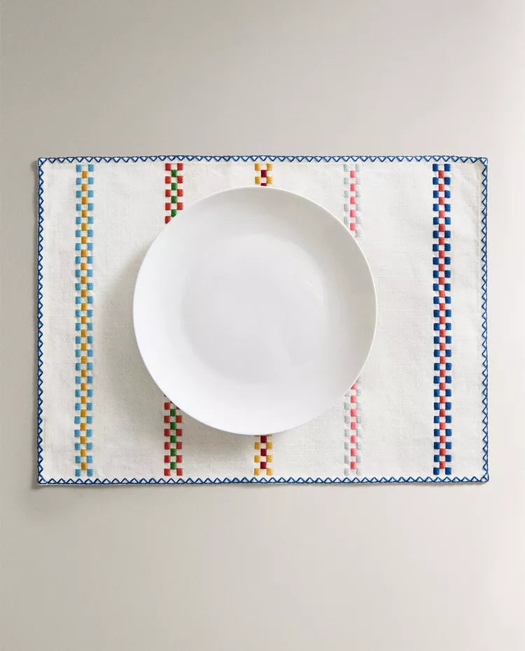 INDIVIDUAL DE ALGODÃO COM REBORDOS MULTICOLORIDOS