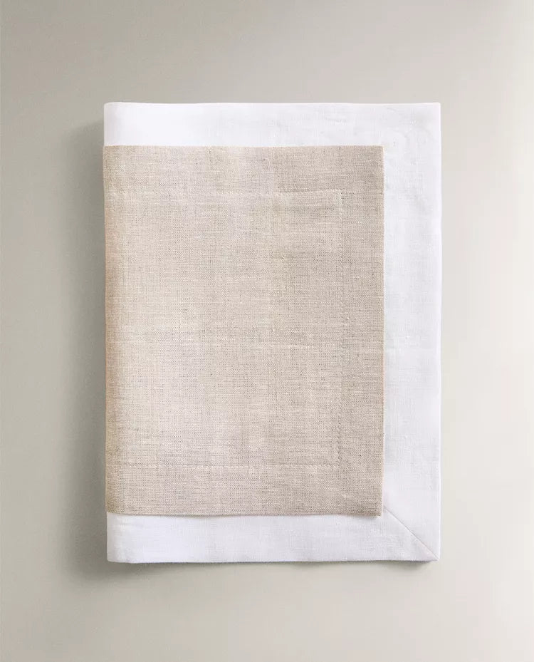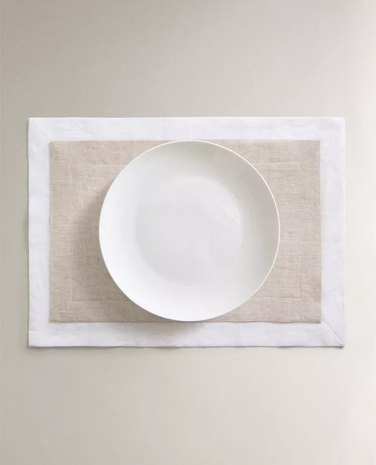 Individual com borda em contraste. Tecido 100% linho. Tamanho 35 x 50 cm Read more