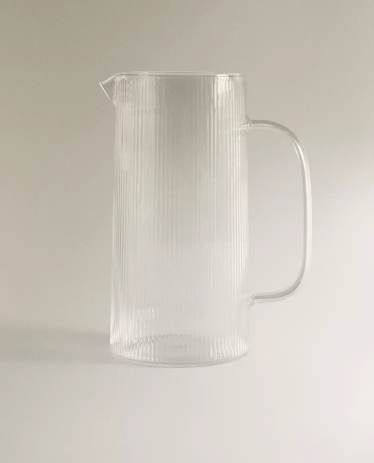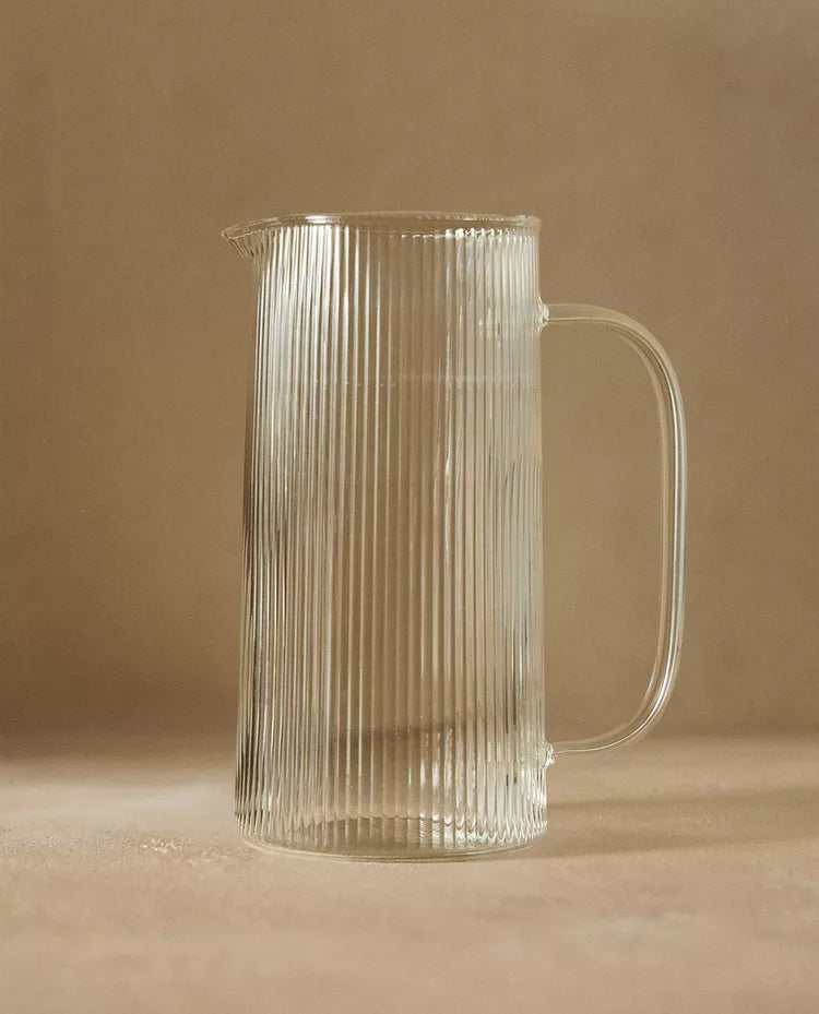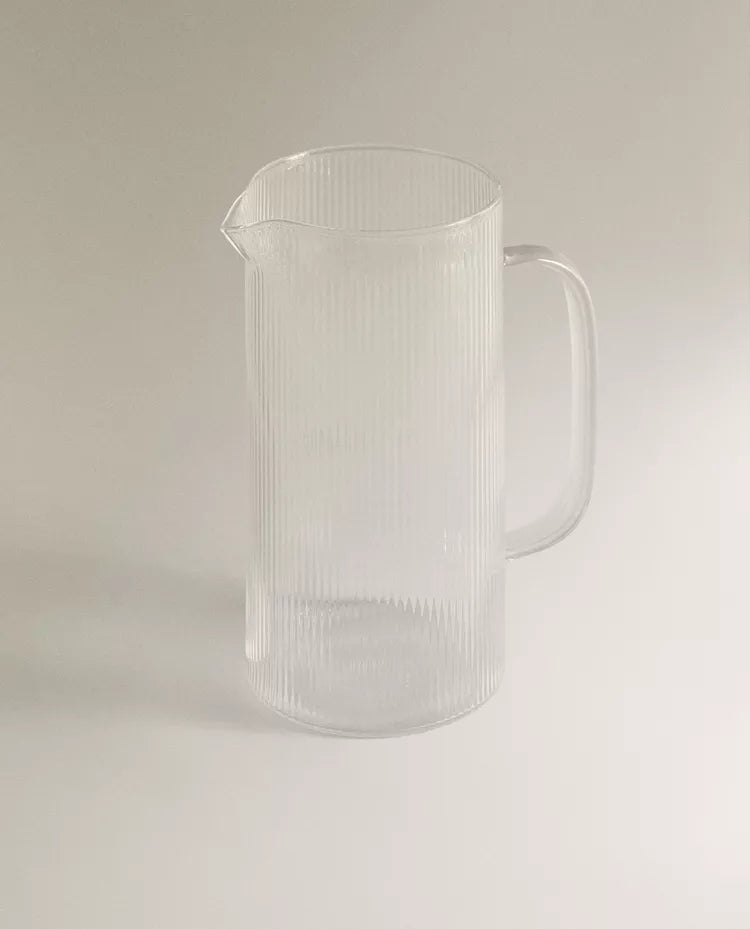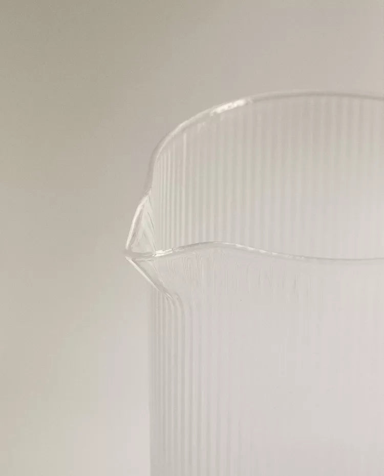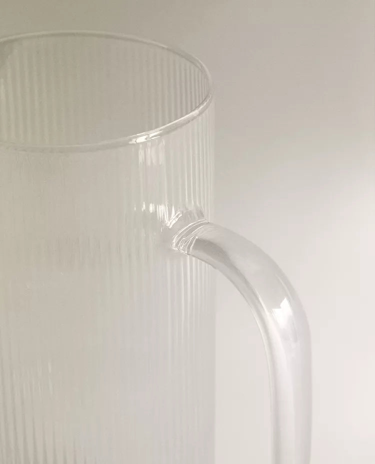 Jarro de borossilicato com linhas verticais em relevo e asa.O borossilicato é um vidro muito resistente a altas temperaturas e... Read more