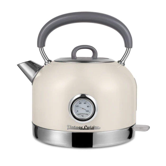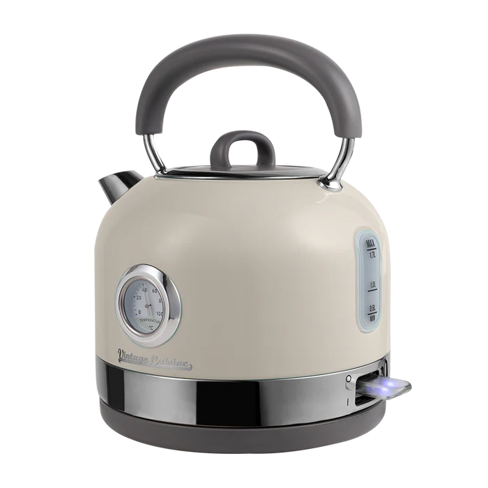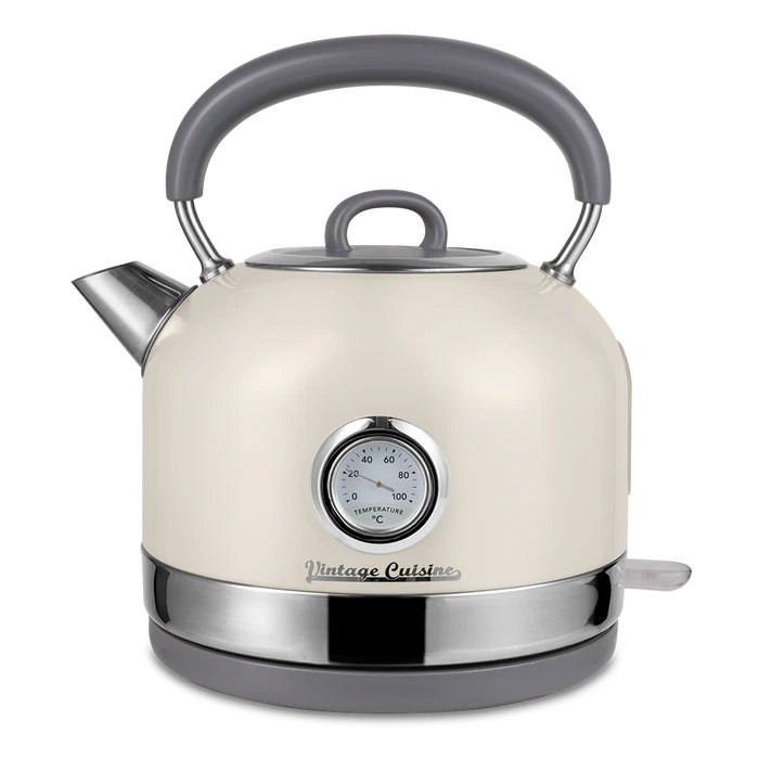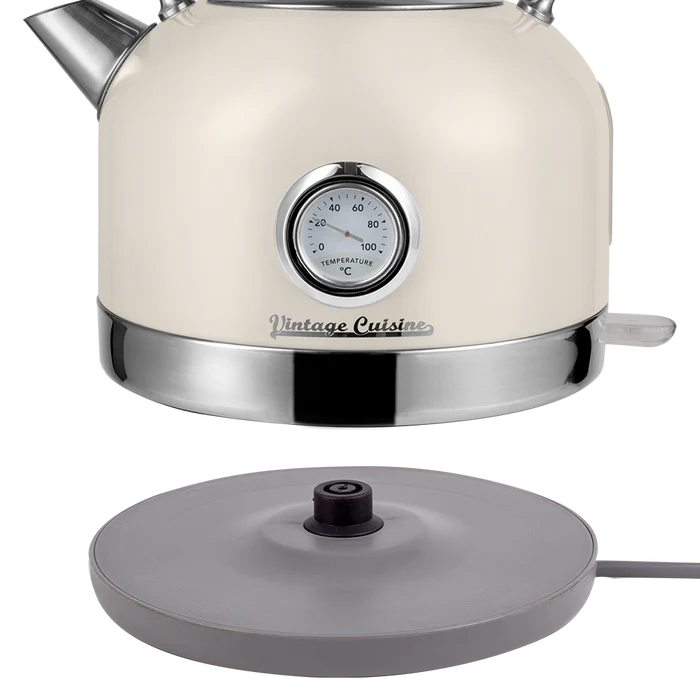 Um novo modelo do Jarro Elétrico Vintage Cuisine! Um jarro elétrico é um básico de todas as cozinhas. Vale a pena assegurar que o aparelho corresponde às expectativas, como uma capacidade adequada – para que consiga preparar uma bebida quente para todos os membros da família e convidados. A potência para aquecer rapidamente – especialmente quando regressa a casa nos dias mais frios do Inverno! Claro, a estética é importante também e por isso asseguramos um design único que faz deste jarro um apontamento de bom gosto na nossa cozinha.