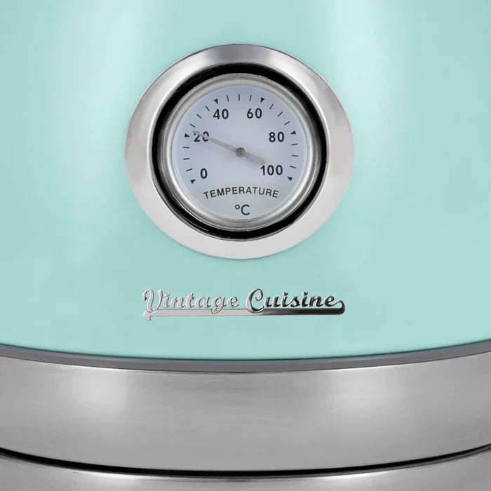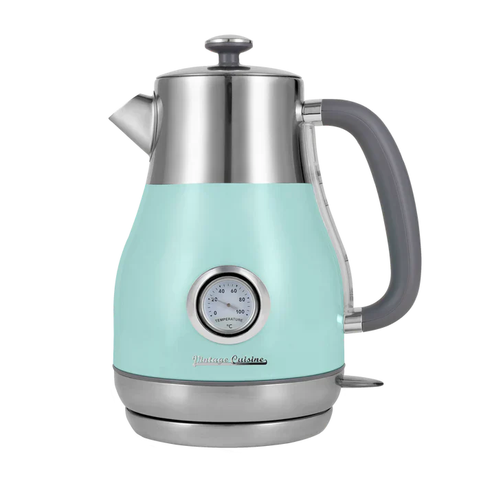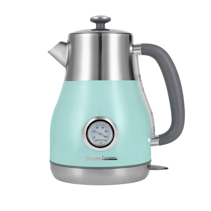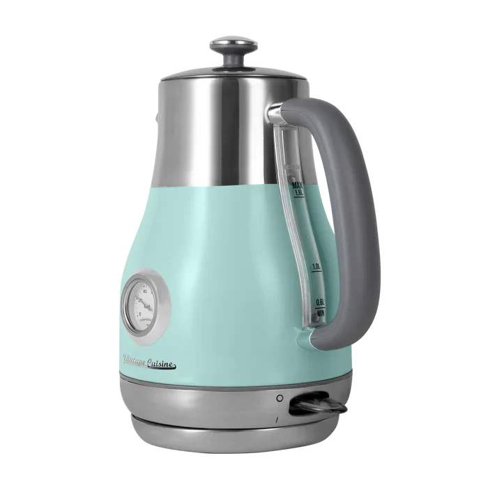 Um novo modelo do Jarro Elétrico Vintage Cuisine! Um jarro elétrico é um básico de todas as cozinhas. Vale a pena assegurar que o aparelho corresponde às expectativas, como uma capacidade adequada – para que consiga preparar uma bebida quente para todos os membros da família e convidados. A potência para aquecer rapidamente – especialmente quando regressa a casa nos dias mais frios do Inverno! Claro, a estética é importante também e por isso asseguramos um design único que faz deste jarro um apontamento de bom gosto na nossa cozinha.