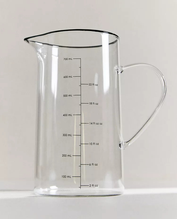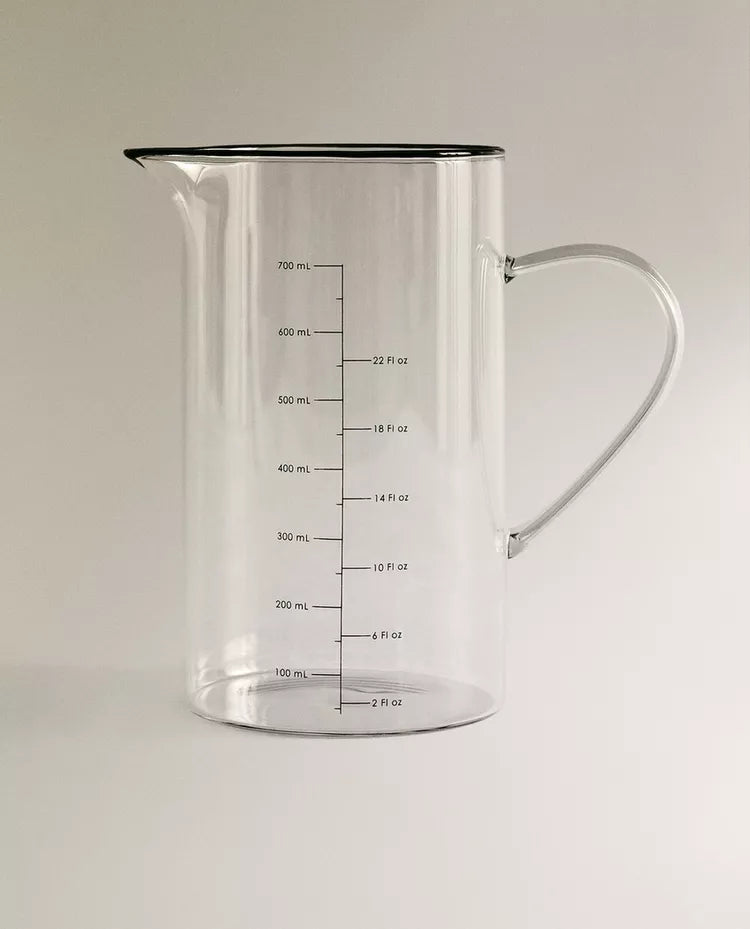 Jarro medidor de borossilicato com medidas em ml e oz. Tem asa e pormenor de cor na borda.O borossilicato é... Read more