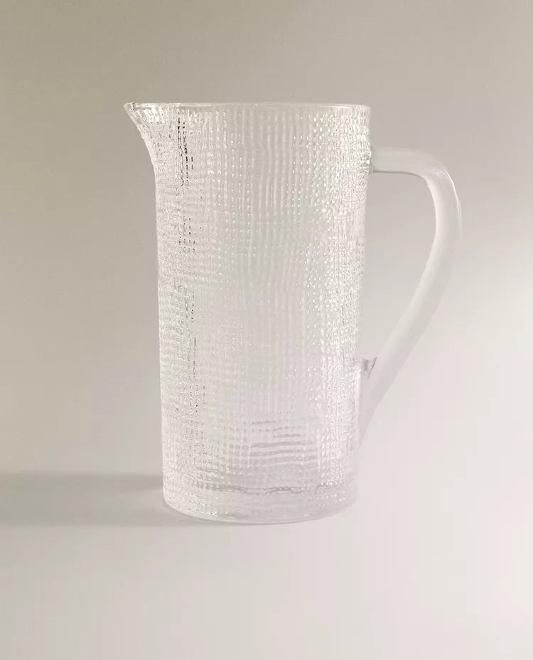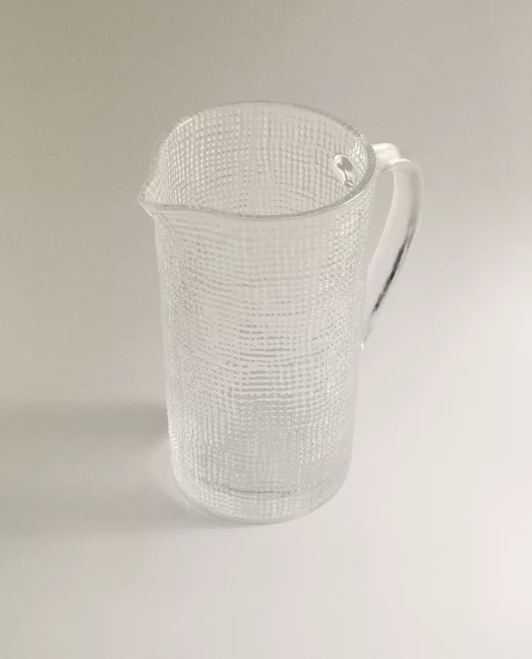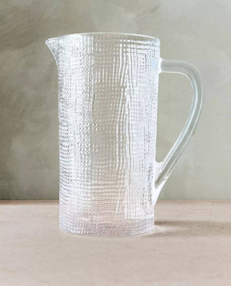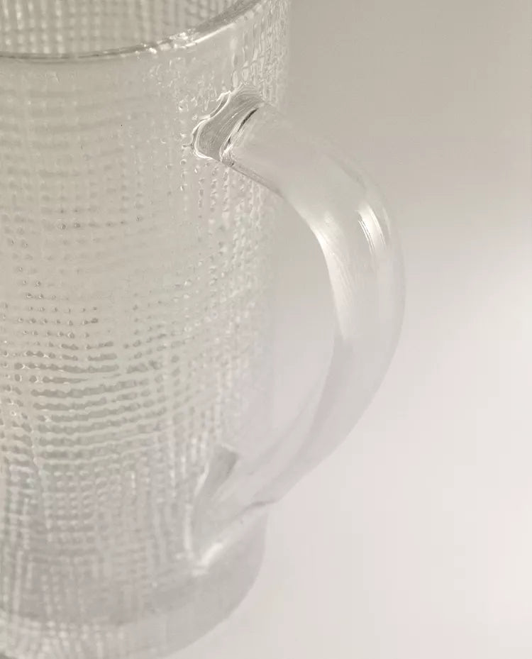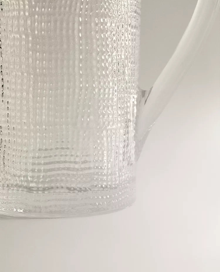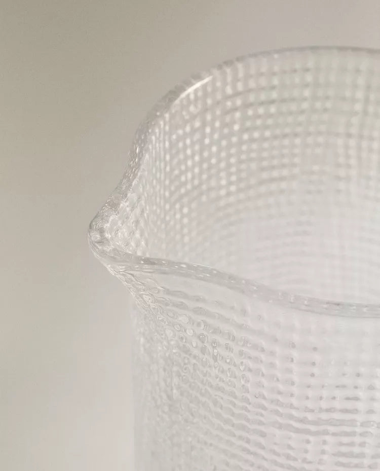 Jarro de vidro transparente com uma textura gravada em forma de linhas entrecruzadas, que lhe dá um aspeto de malha... Read more