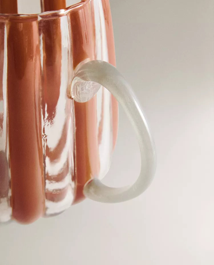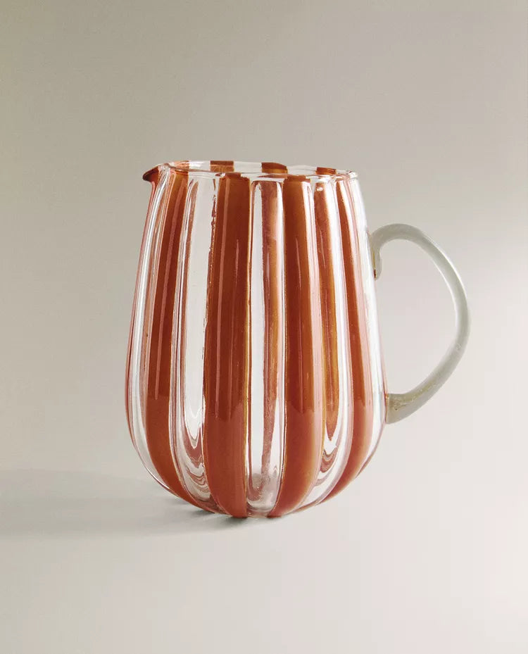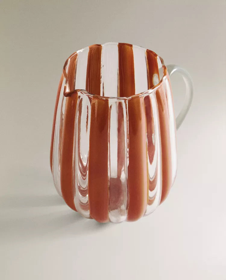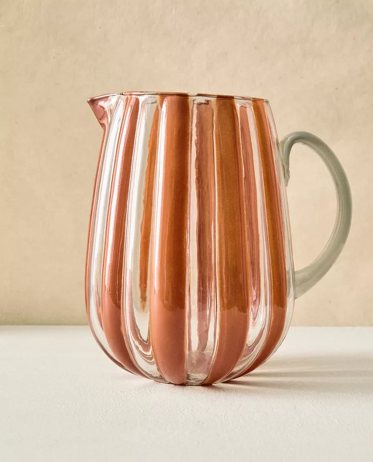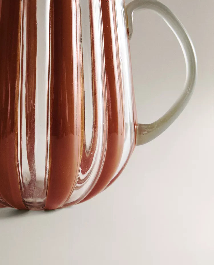 Jarro em vidro com design de riscas e asa numa cor em contraste. Capacidade: 2000 ml Altura Largura Profundidade 20cm 15cm... Read more