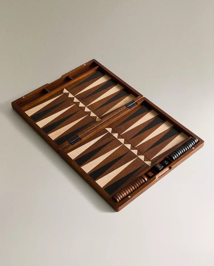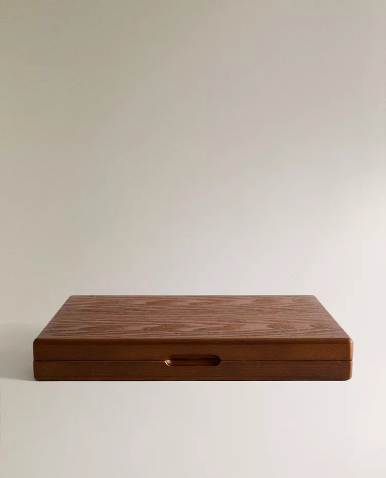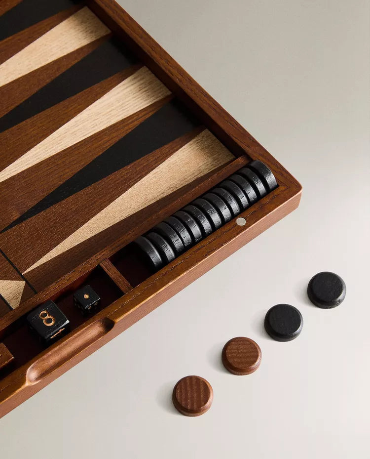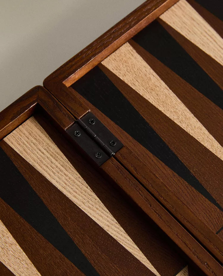 Jogo de backgammon com design tipo caixa, elaborado em madeira de freixo.O conjunto inclui 30 fichas (15 brancas e 15... Read more