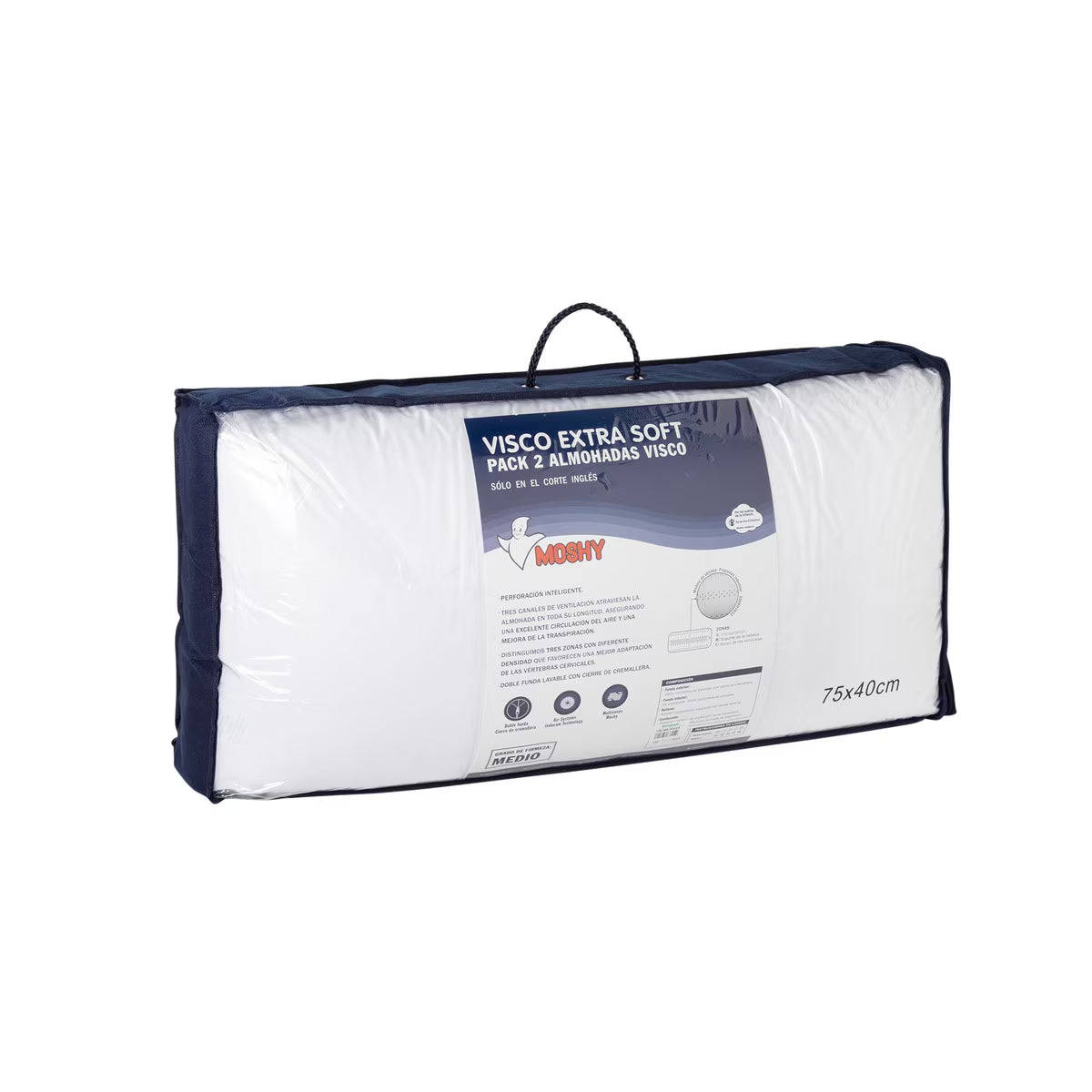 Jogo de 2 almofadas de firmeza média com um núcleo viscoelástico injetado de células abertas. Máxima adaptação, máxima respirabilidade e máxima suavidade, que só encontrará no El Corte Inglés.