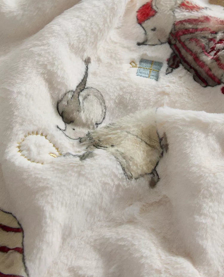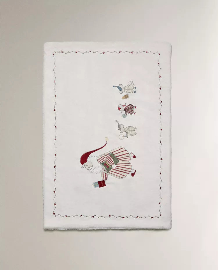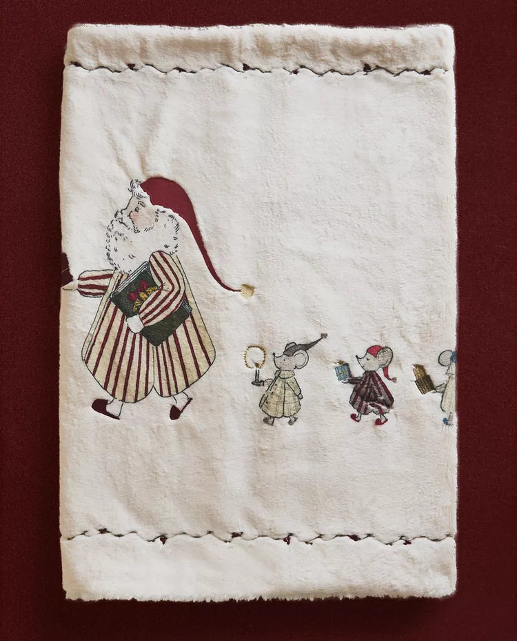 Manta infantil em polar para bebé com estampado de Pai Natal e três ratos a levar presentes para o Natal.... Read more