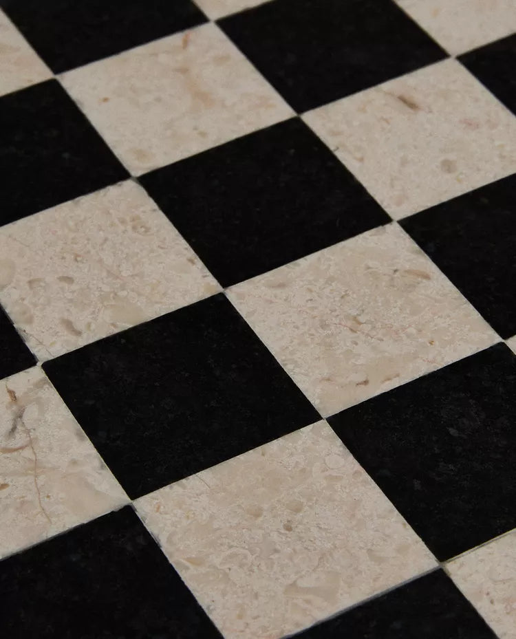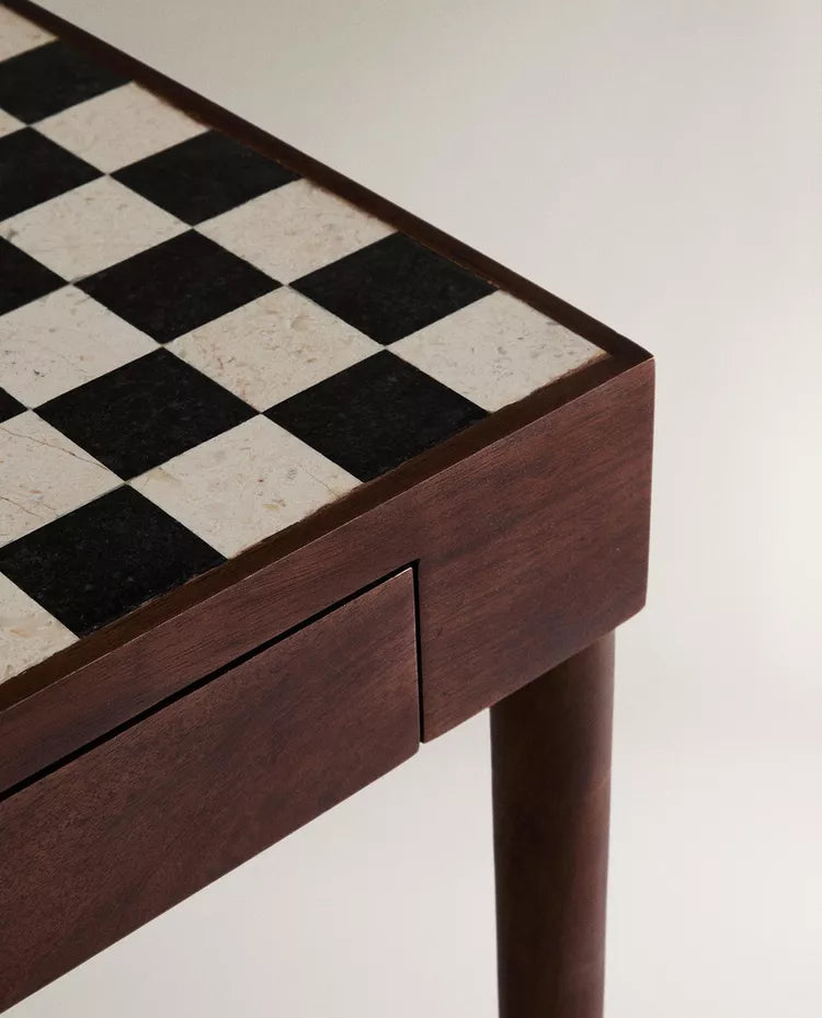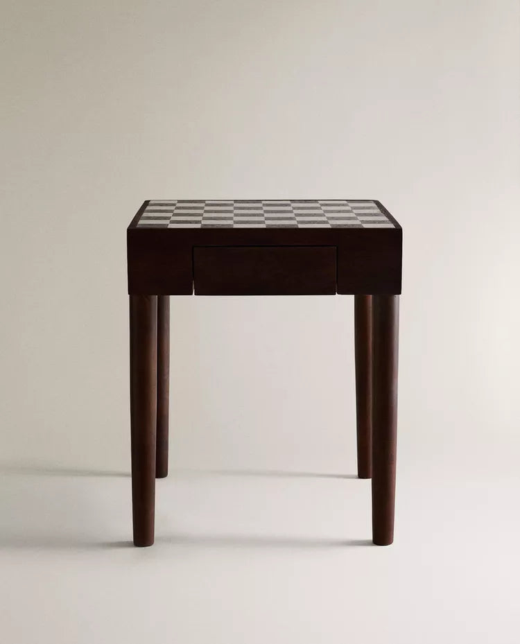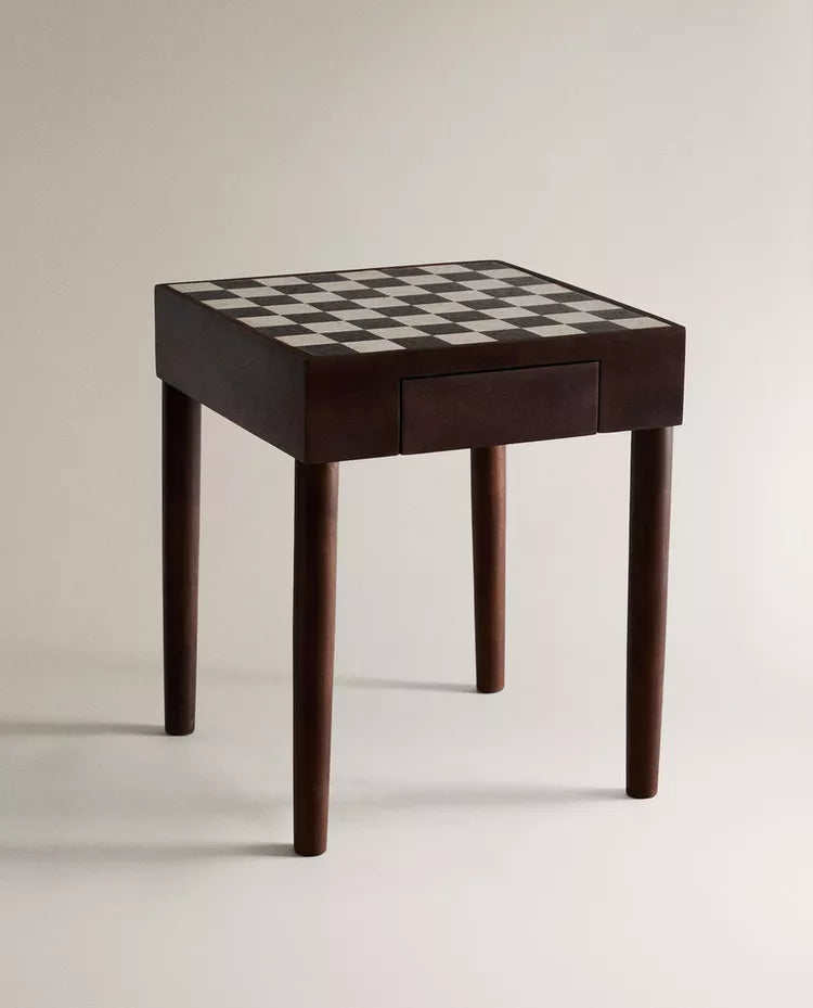 MESA AUXILIAR TECA TABULEIRO XADREZ MÁRMORE