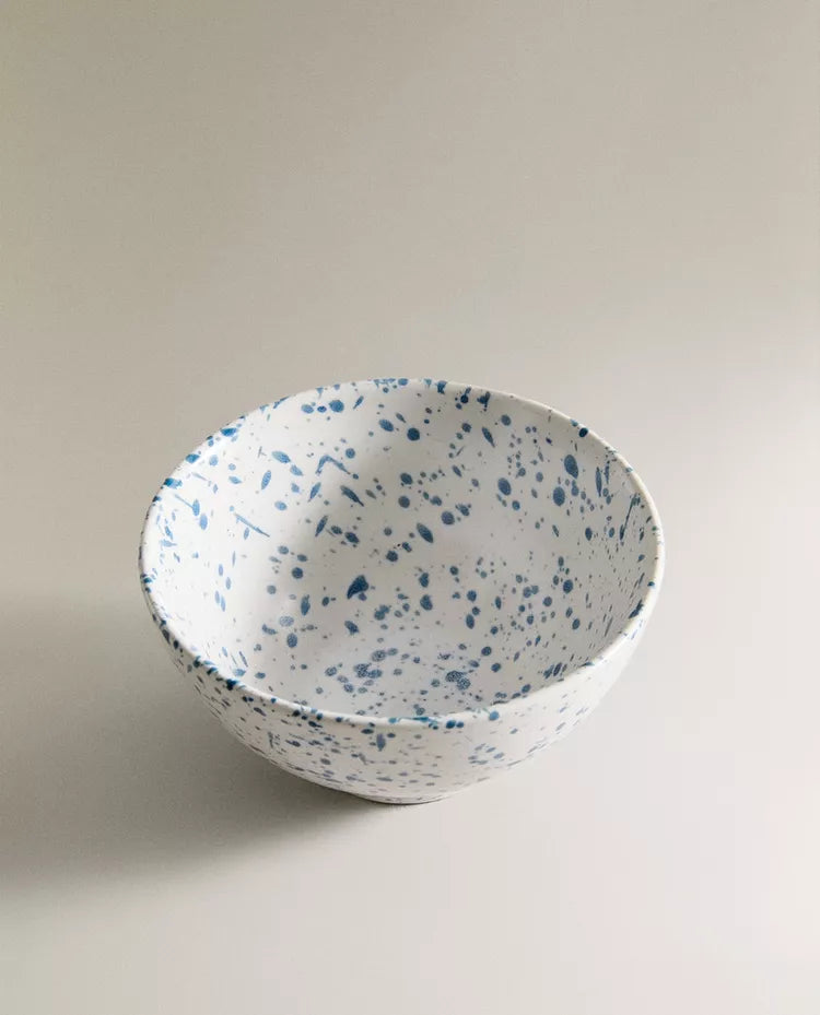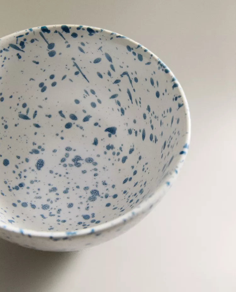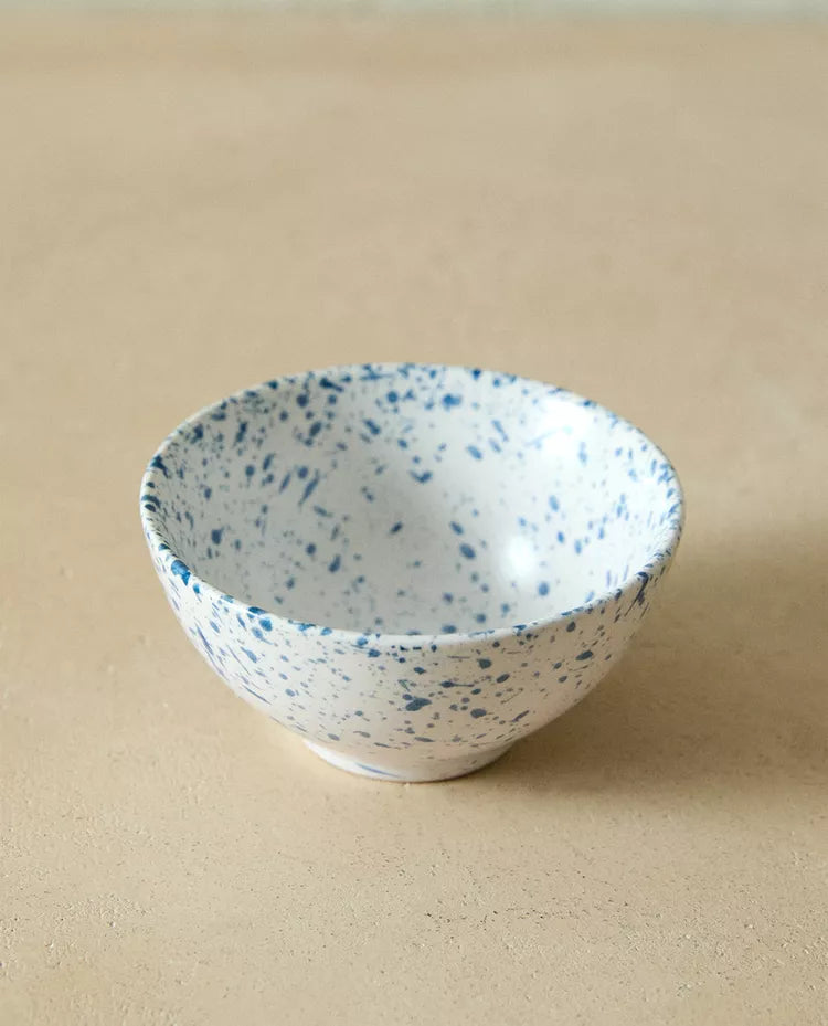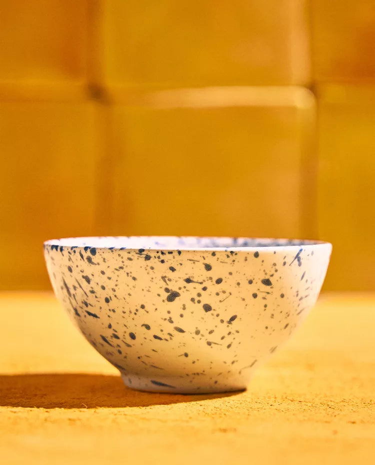 Minitigela em grés com um padrão de pintas em contraste. Altura Largura Profundidade 3.8cm 8cm 8cm Read more