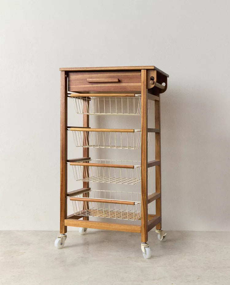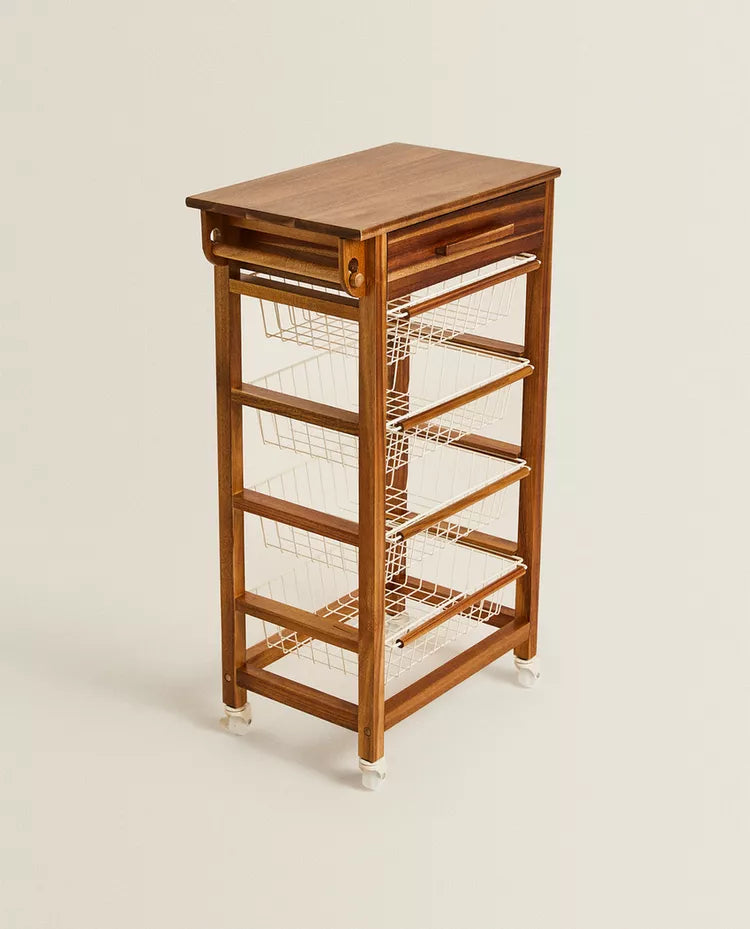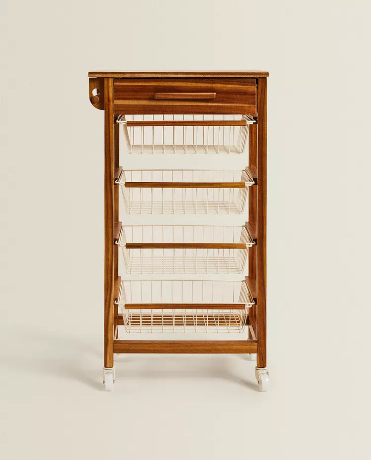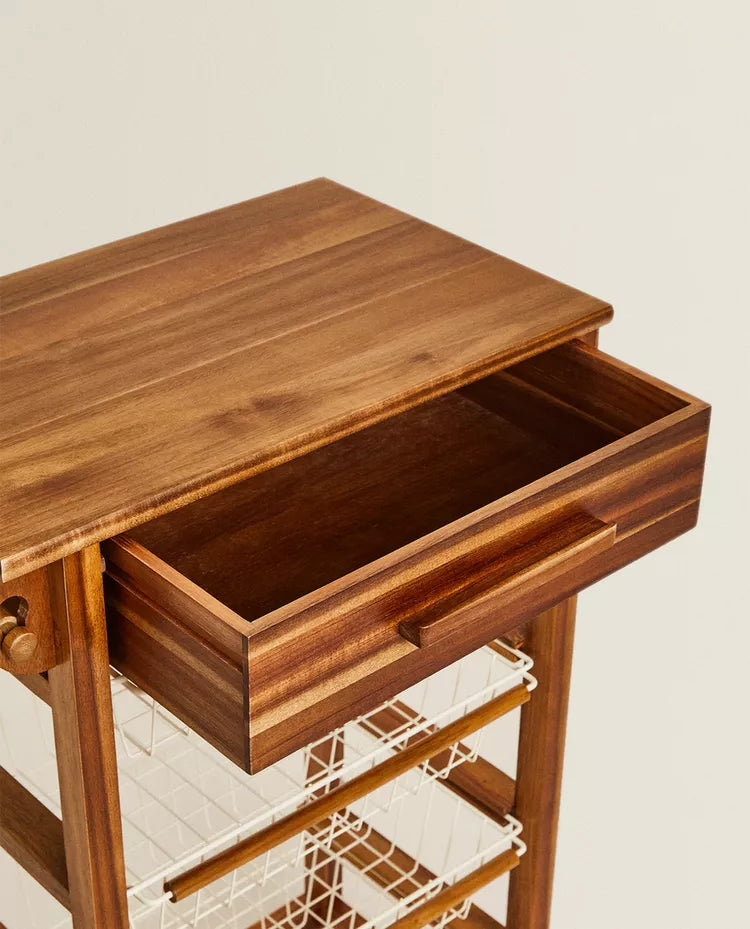 BEGE-CLARO|3215/072 Móvel de arrumação com estrutura e gaveta de madeira de acácia, e cestos de metal em forma de rede... Read more