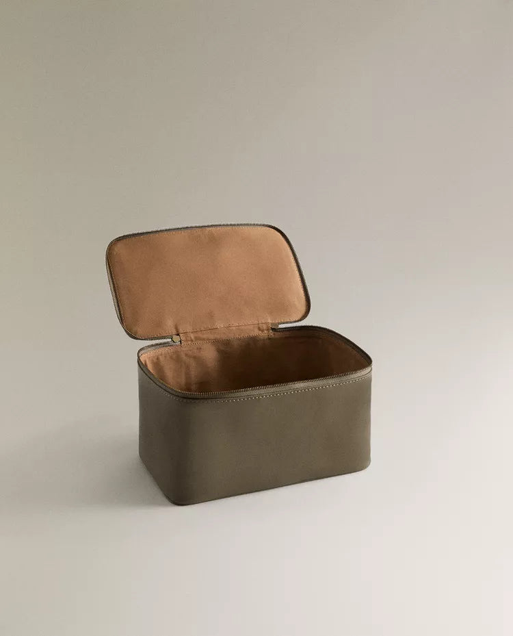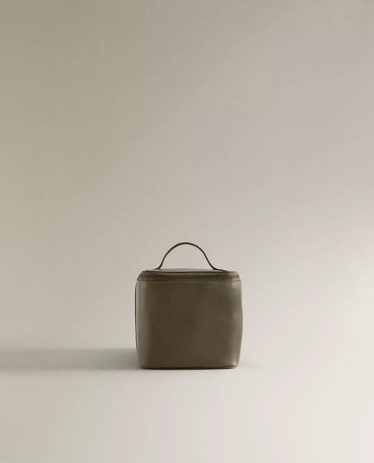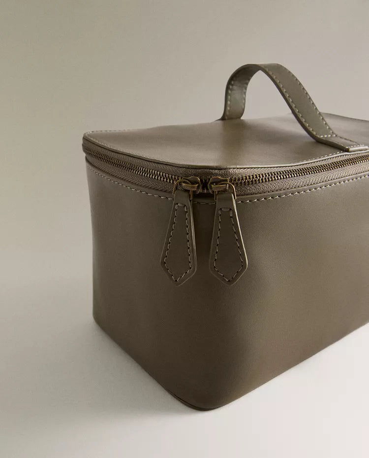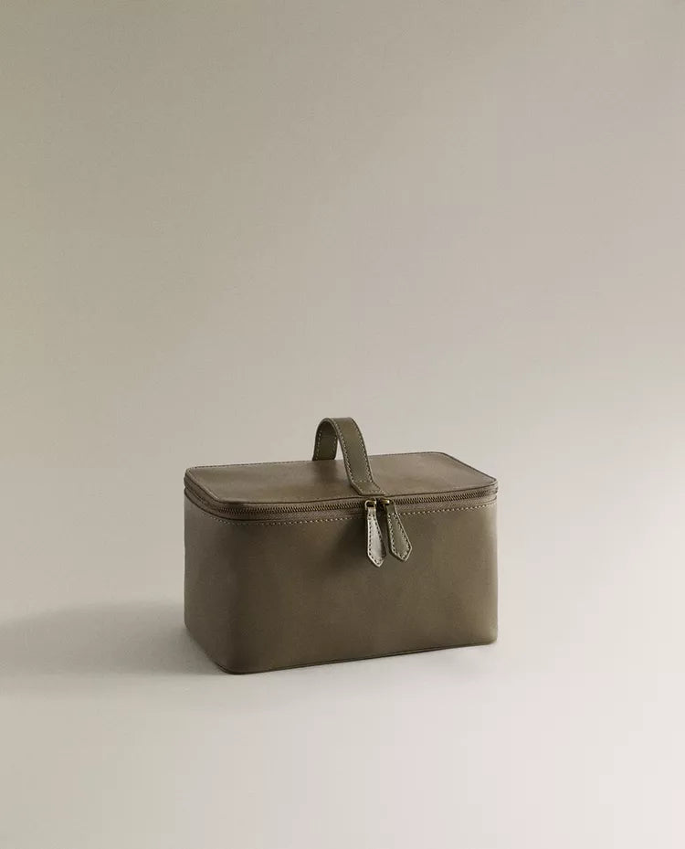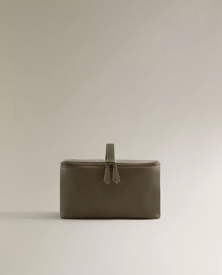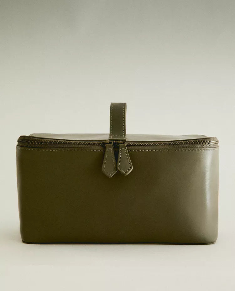 Nécessaire de pele em verde de tamanho grande com bolso interior. Pormenor de asa superior e fecho de correr. Altura... Read more