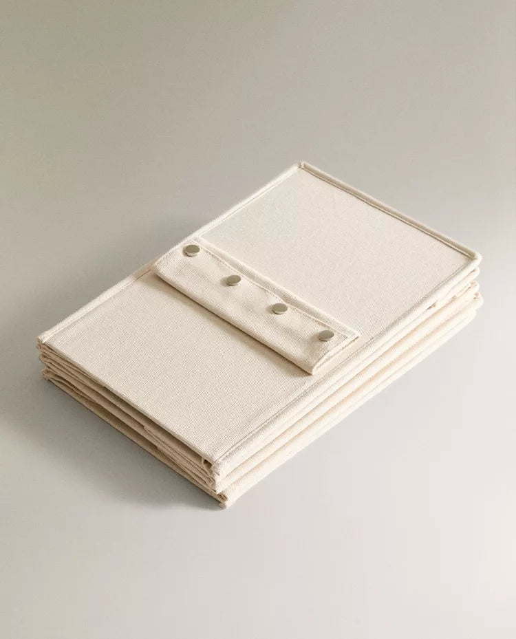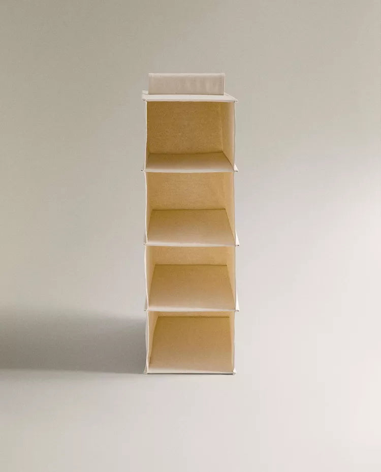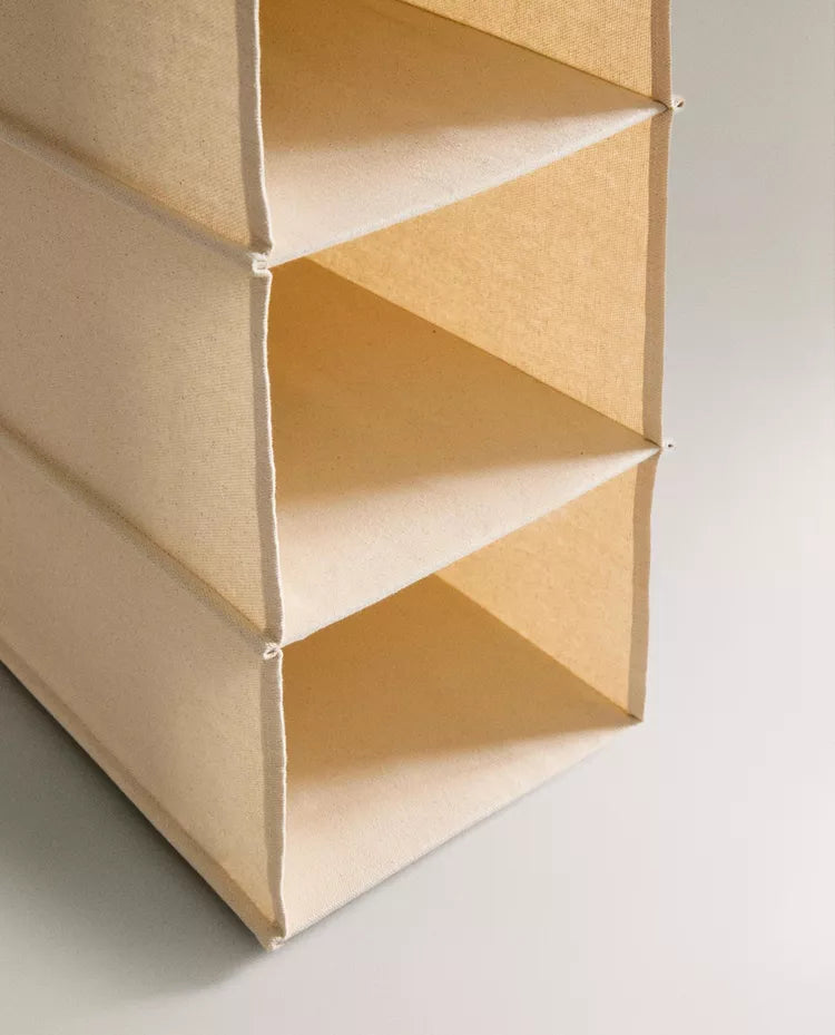 Organizador pendente vertical de algodão com 4 compartimentos e um suporte superior que se fecha com botões para o prender... Read more
