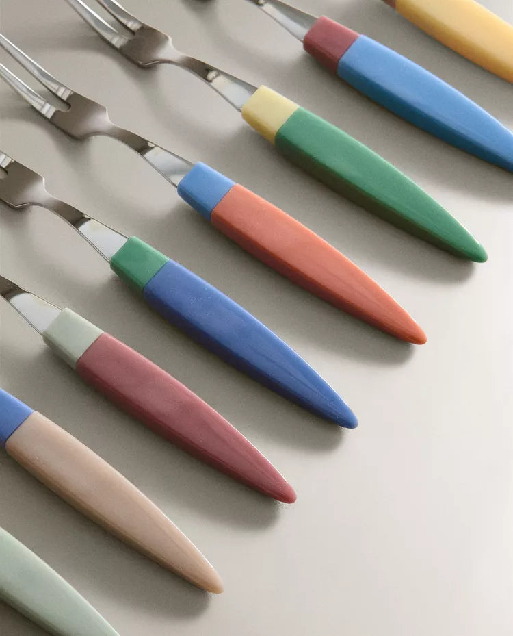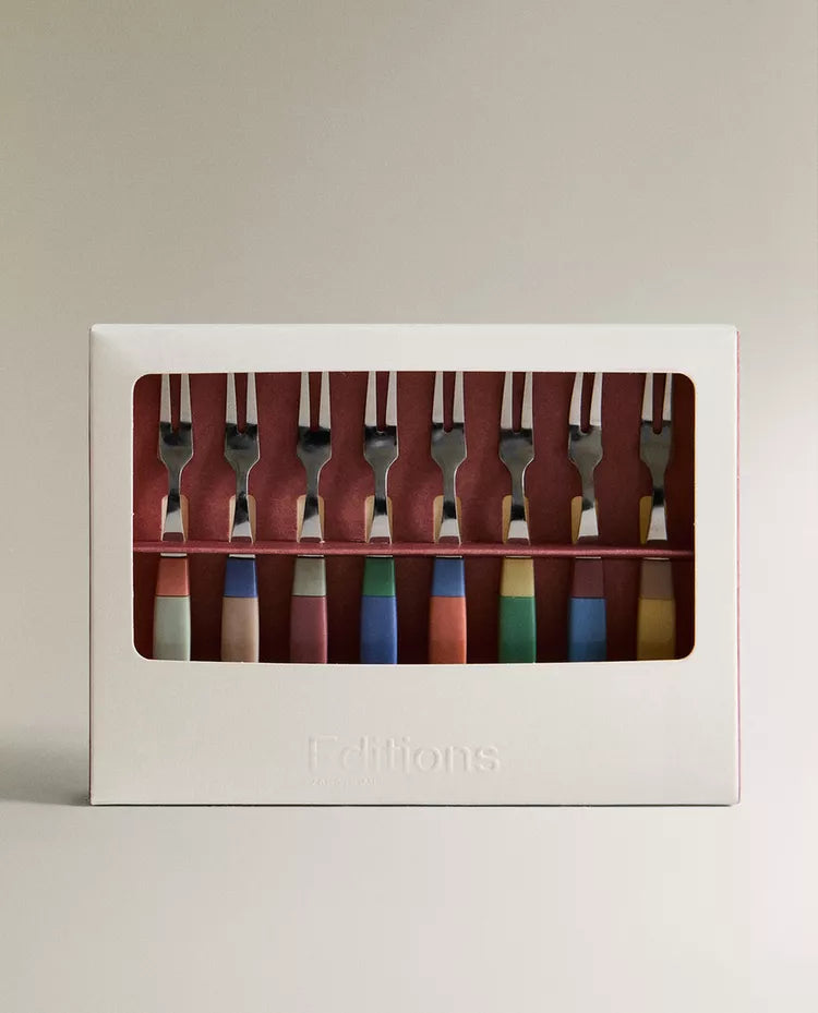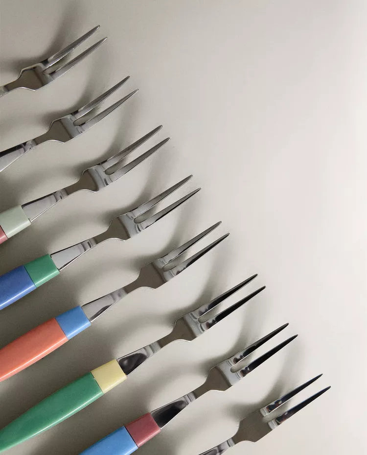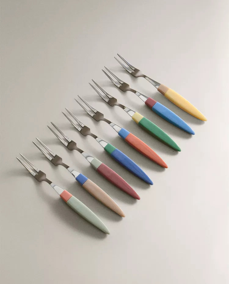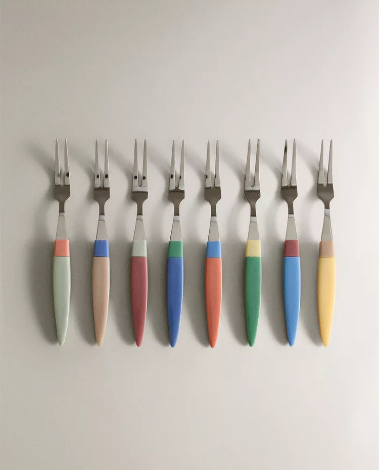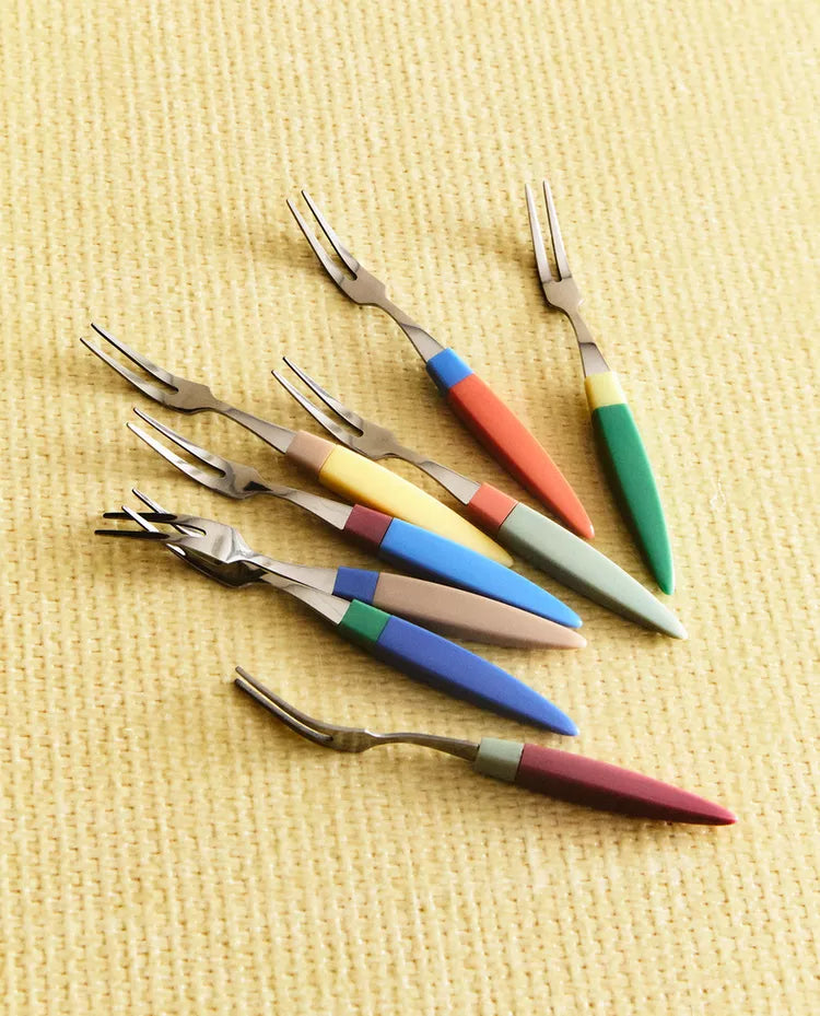 Garfos de aperitivos em aço inoxidável com cabo de resina com design de color block.O conjunto inclui 8 unidades, cada... Read more