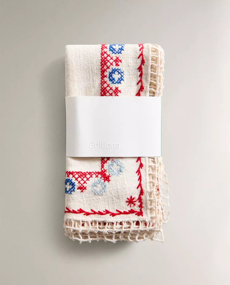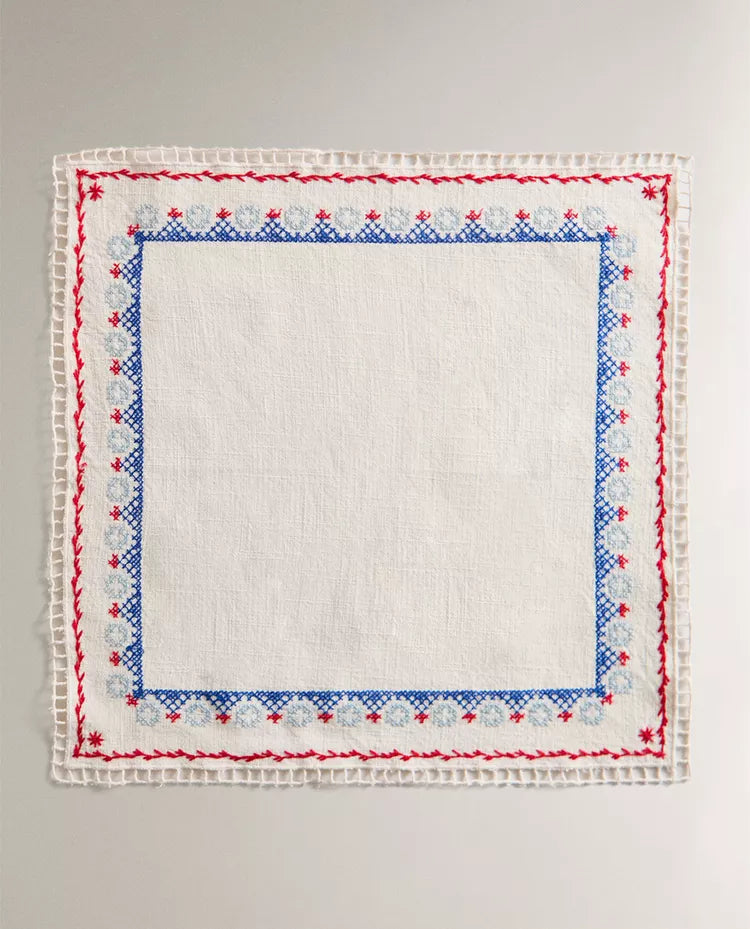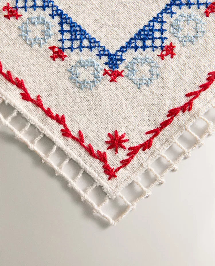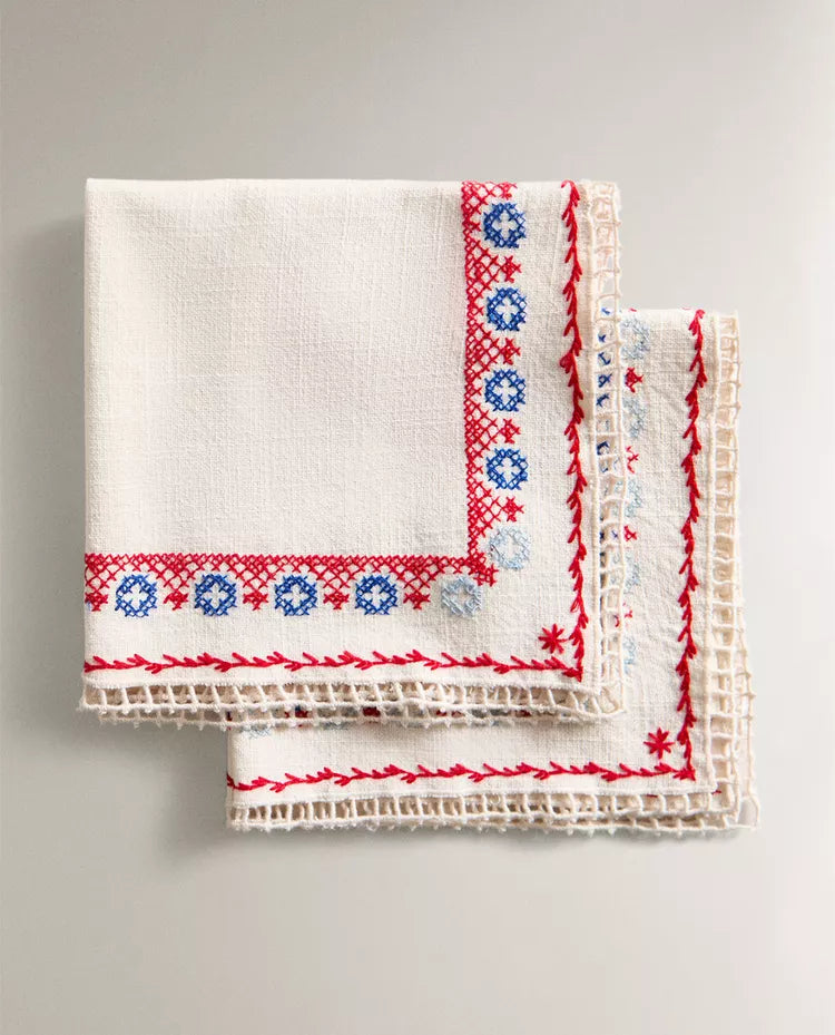 PACK GUARDANAPOS ALGODÃO LINHO BORDADOS PONTO CRUZ (PACK DE 2)