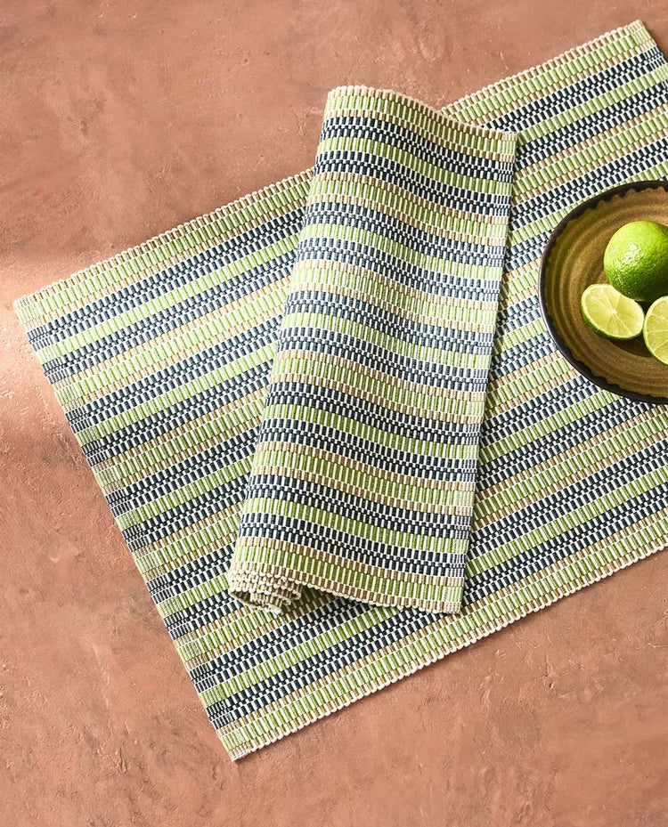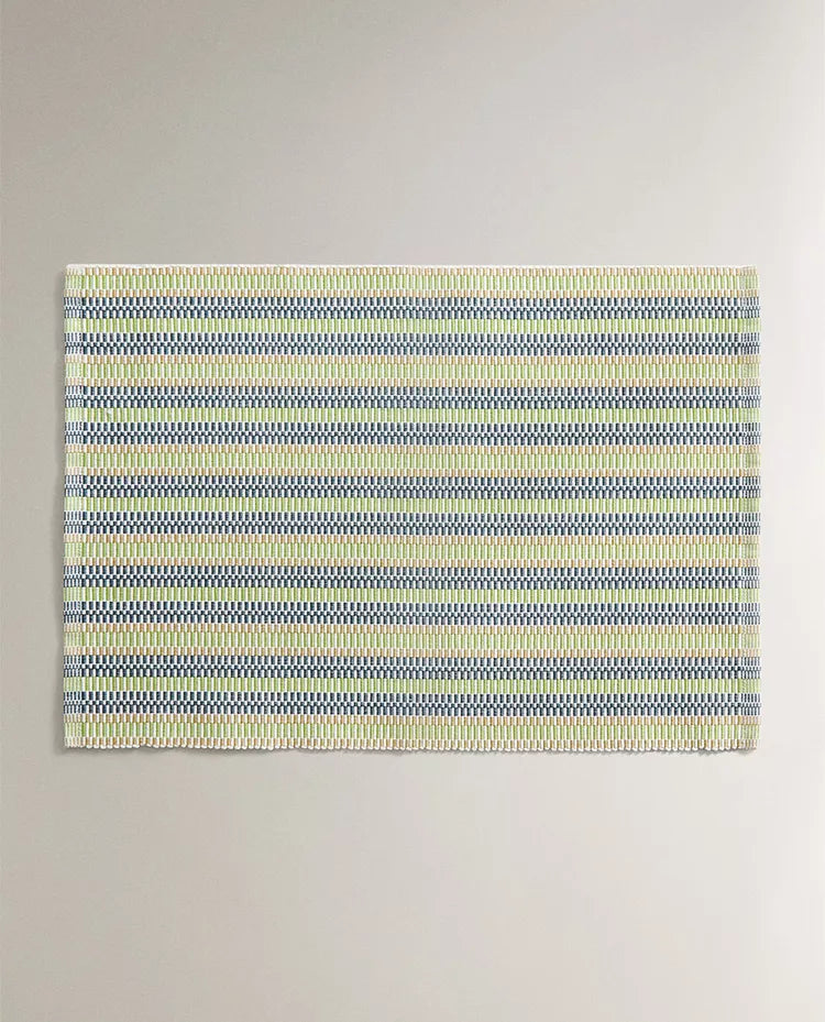Individuais confecionados em algodão, com design de riscas irregulares multicoloridas.O pack inclui 2 unidades. Tamanho 35 x 50 cm Read more