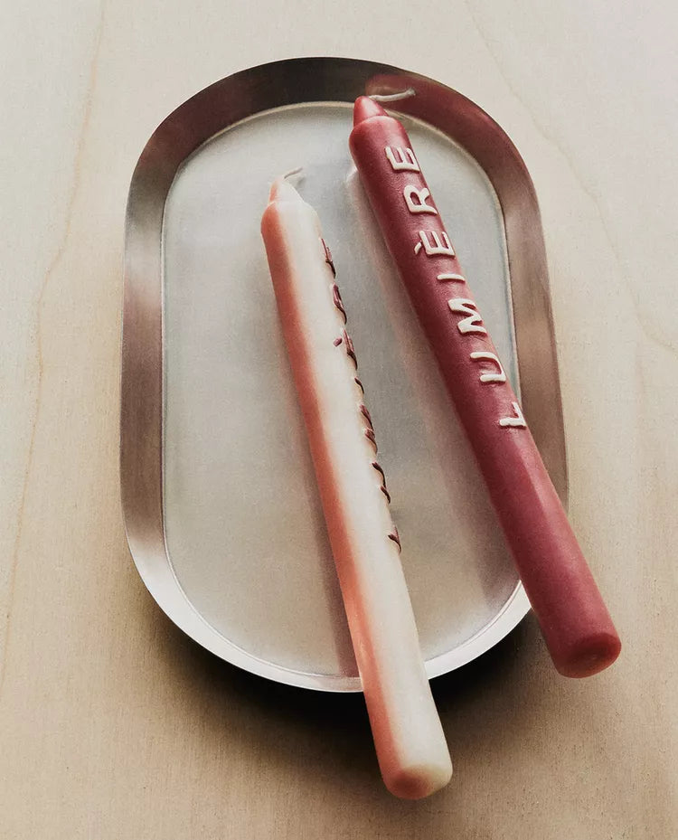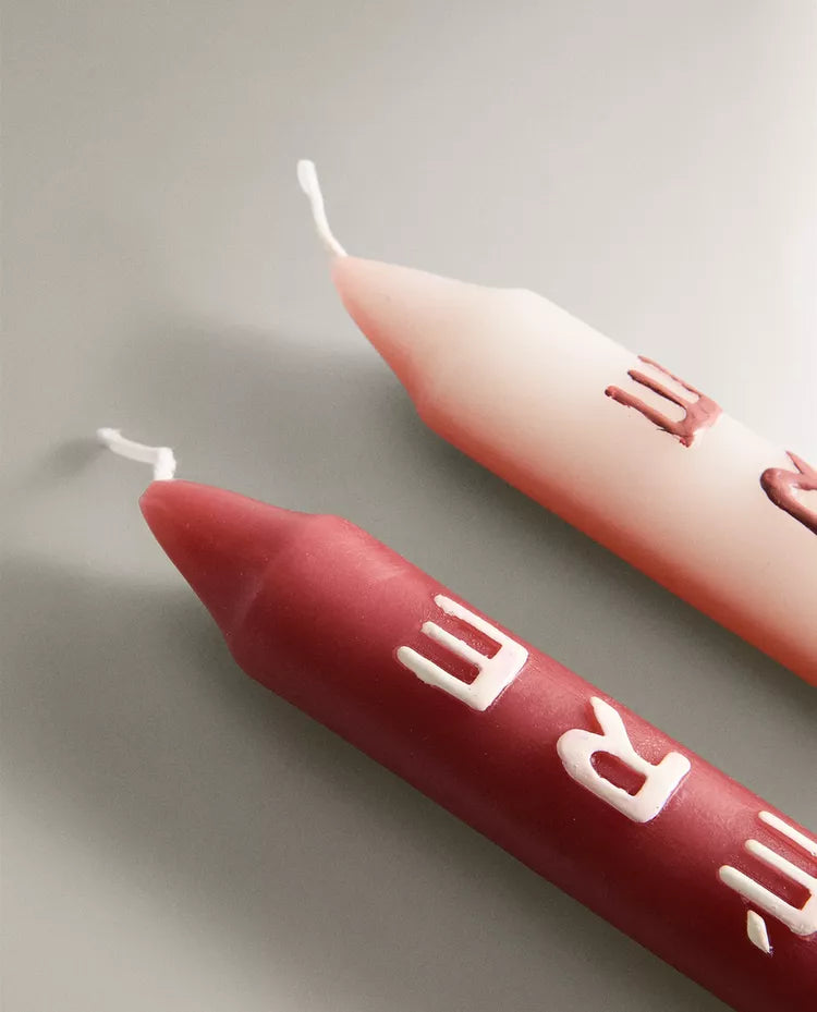 Velas compridas decorativas para candelabro com texto "LUMIÈRE" numa cor em contraste.O pack inclui 2 unidades, cada uma com uma... Read more