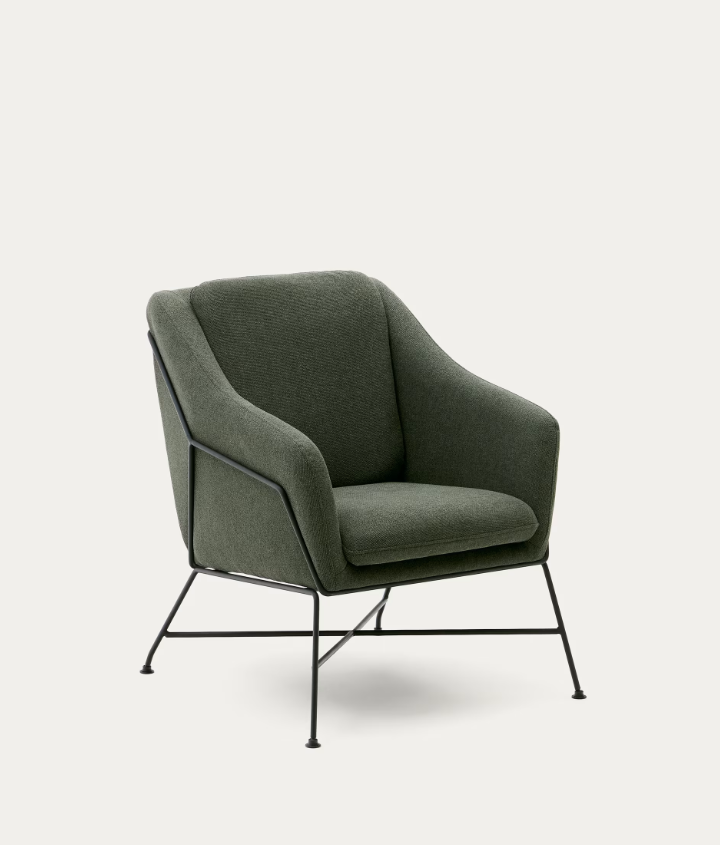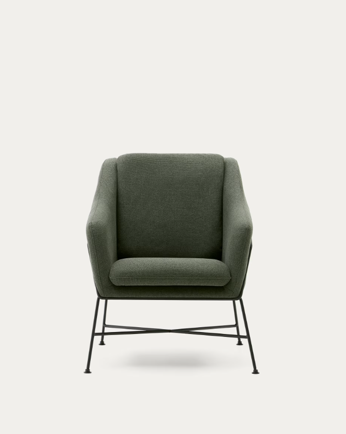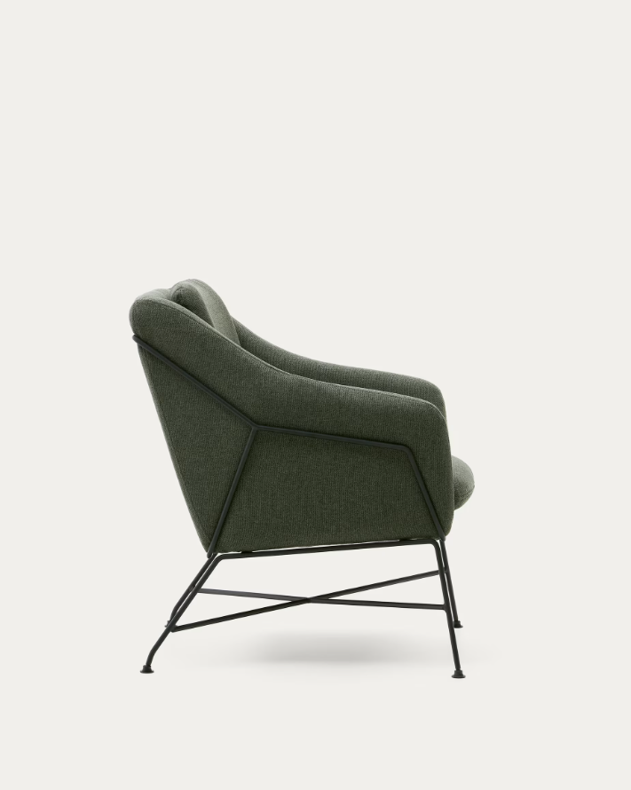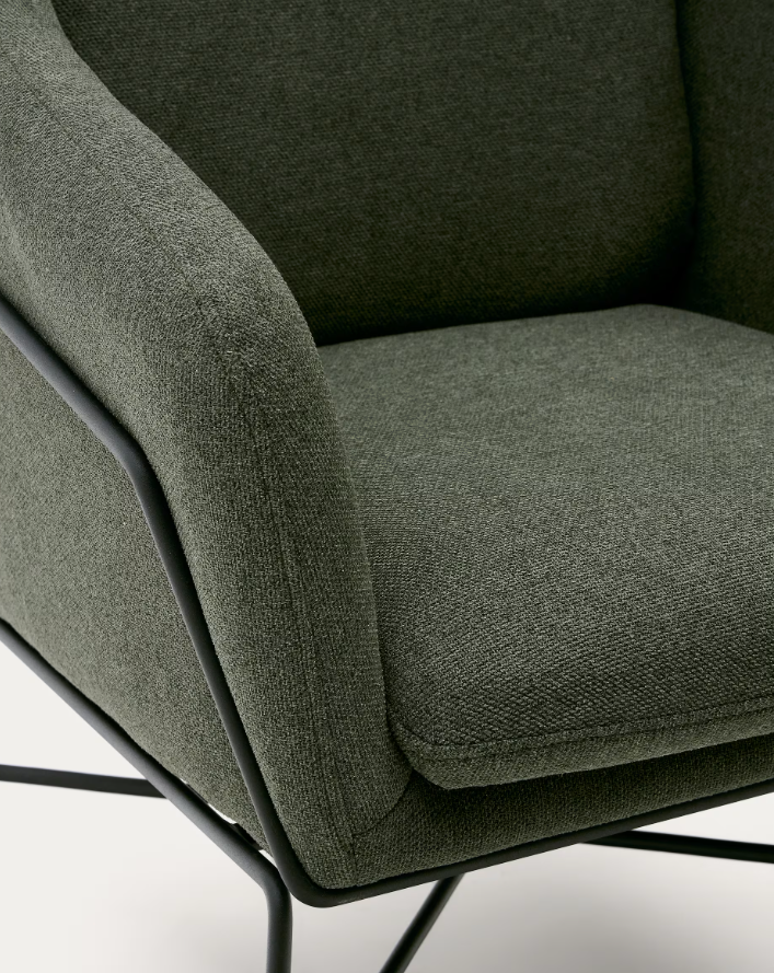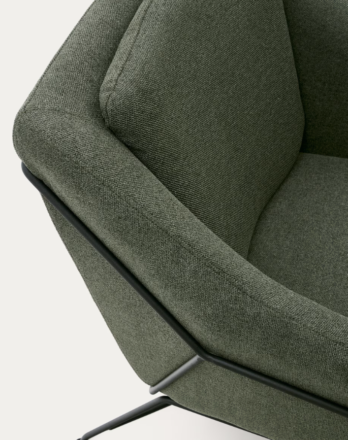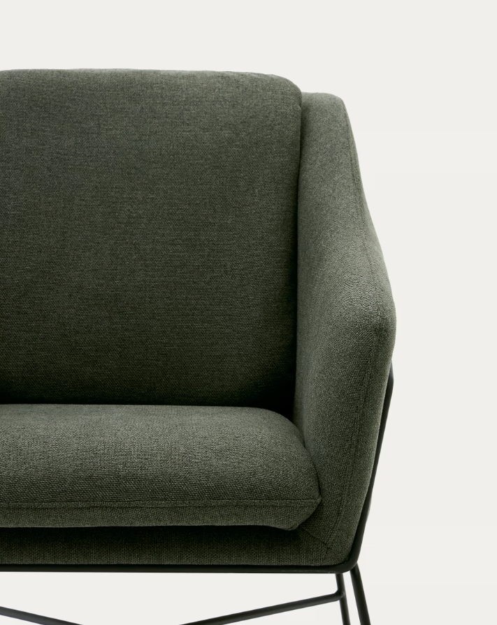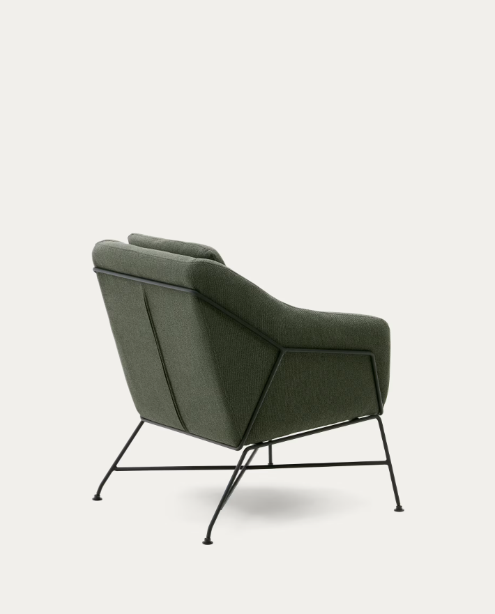 Poltrona Brida verde e pernas de aço com acabamento preto