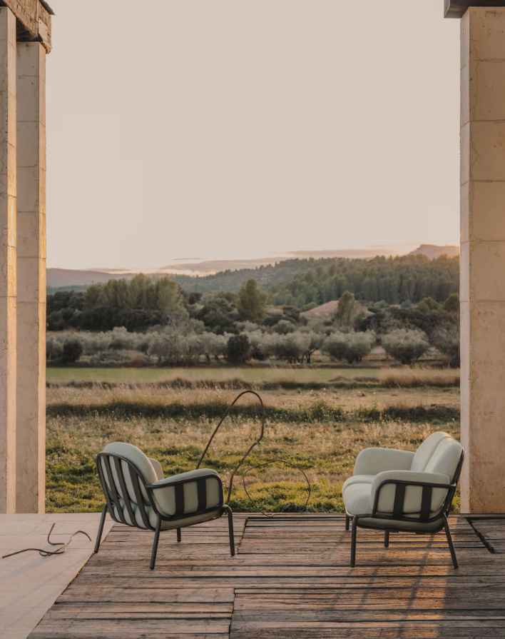 Poltrona de exterior Joncols de alumínio com acabamento pintado verde
