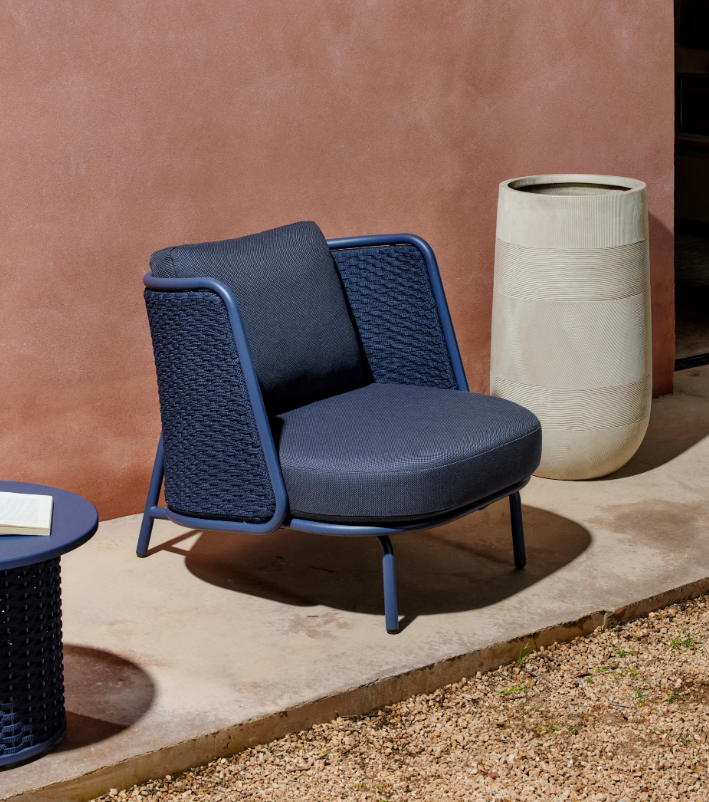 Poltrona de exterior Sedalis em alumínio e corda azul