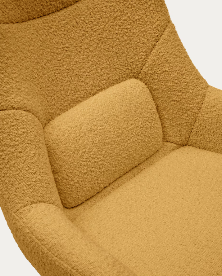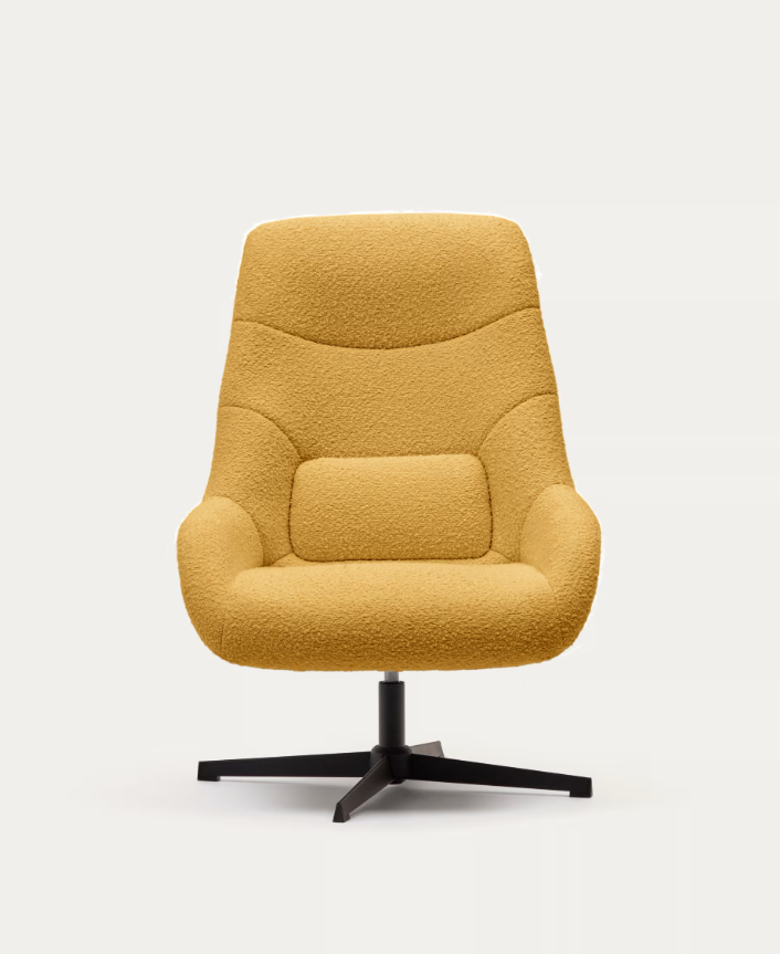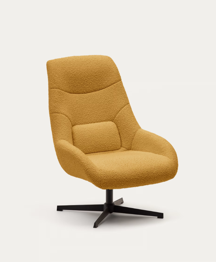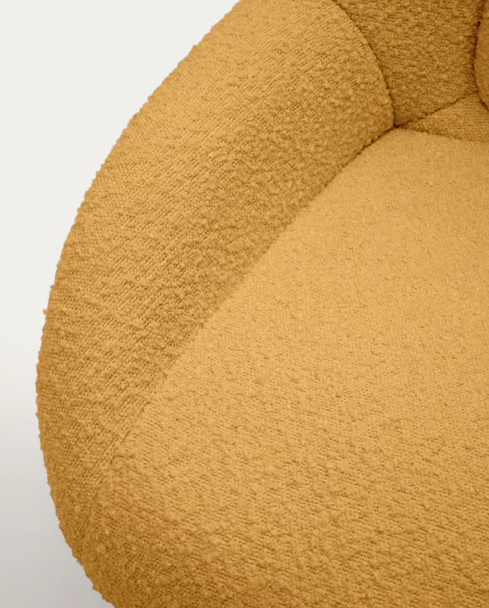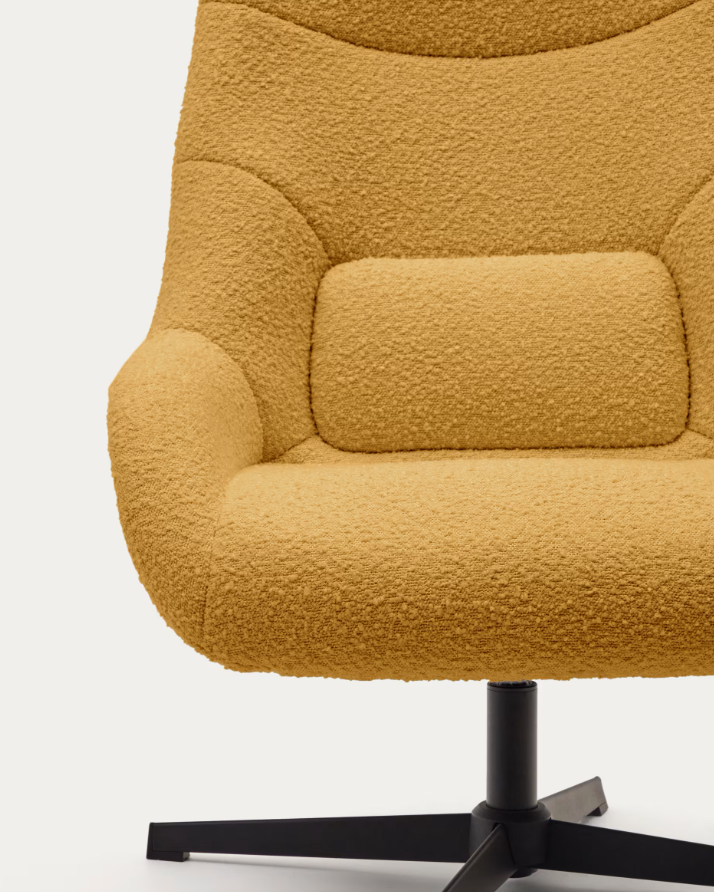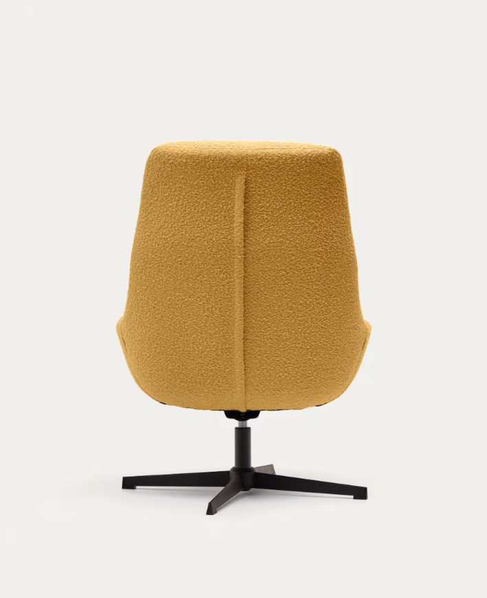 Poltrona giratória com braços estofada em tecido efeito cordeiro mostarda. Base de metal com acabamento pintado de preto. Design de... Read more