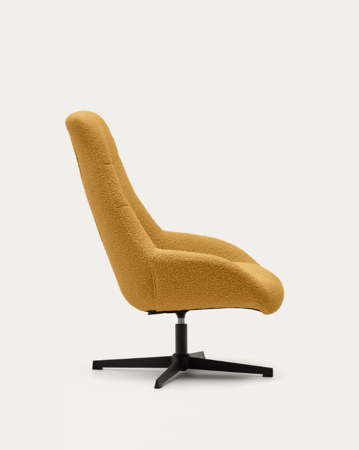 Poltrona giratória Celida de pelo efeito cordeiro mostarda e aço com acabamento preto FSC 100%