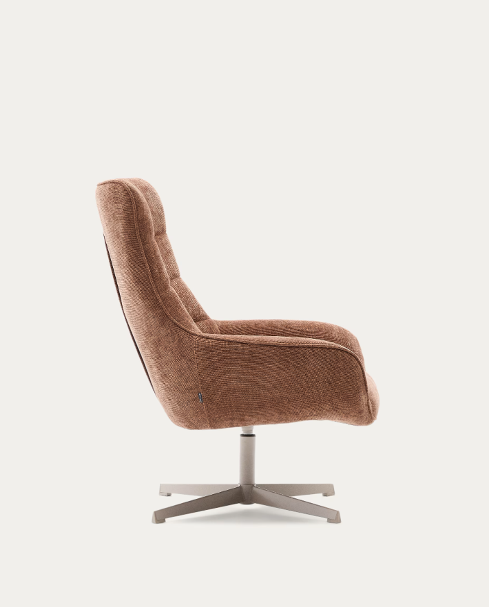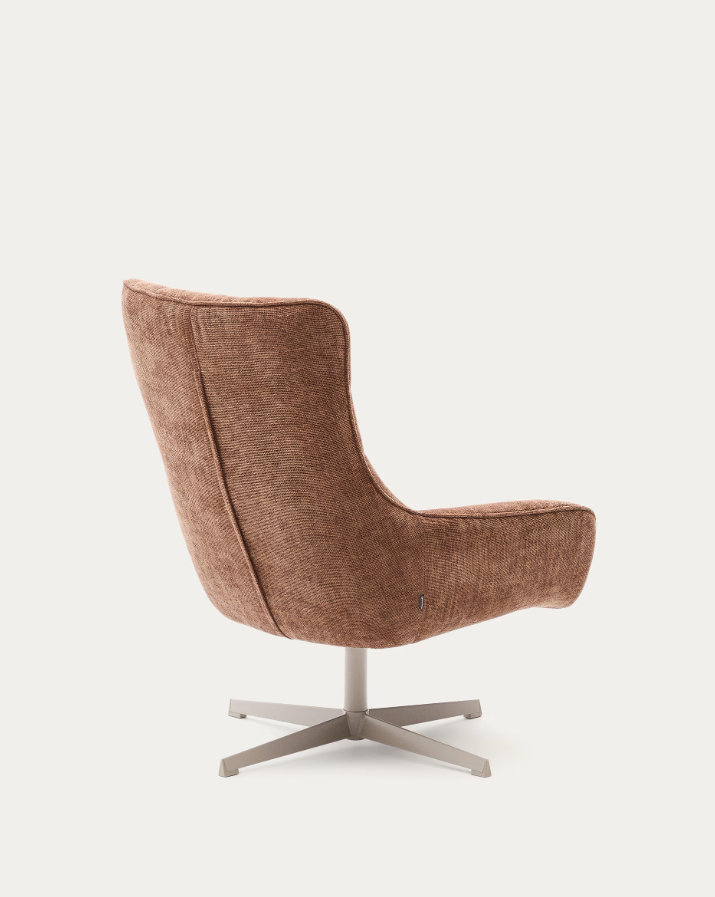 Poltrona giratória Teryl chenille castanho-claro e metal acabamento cinza FSC 100%