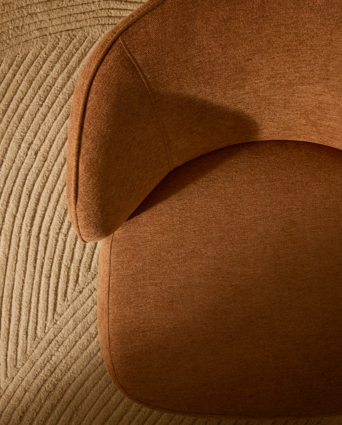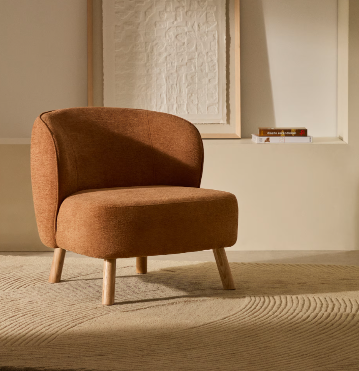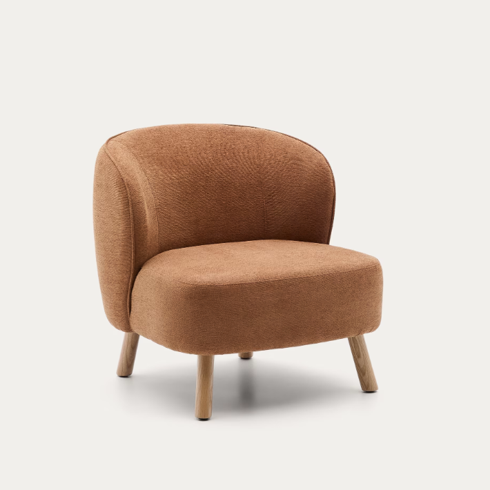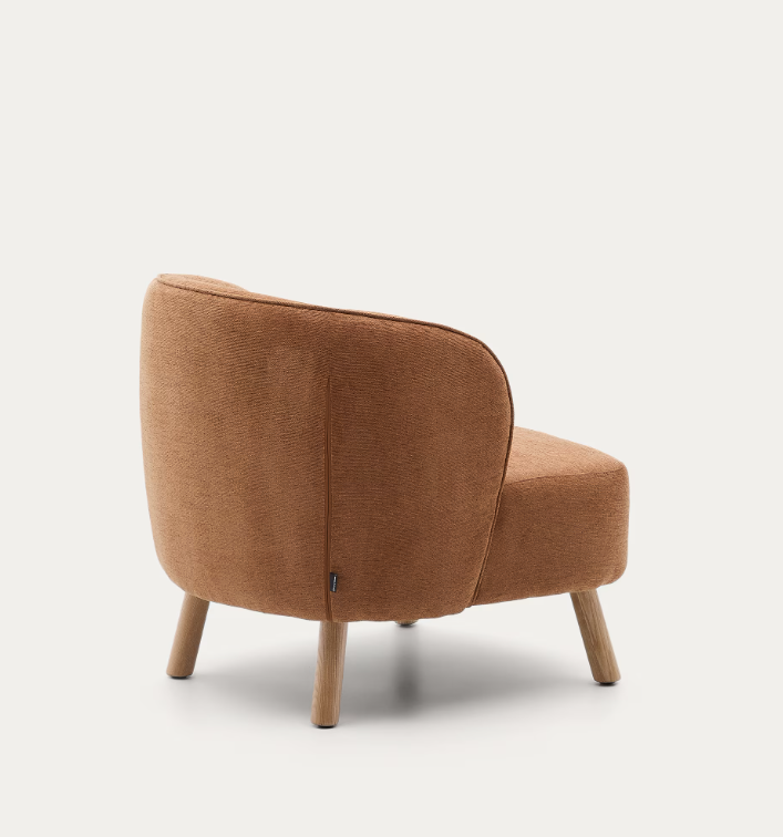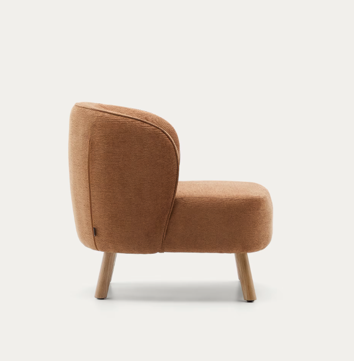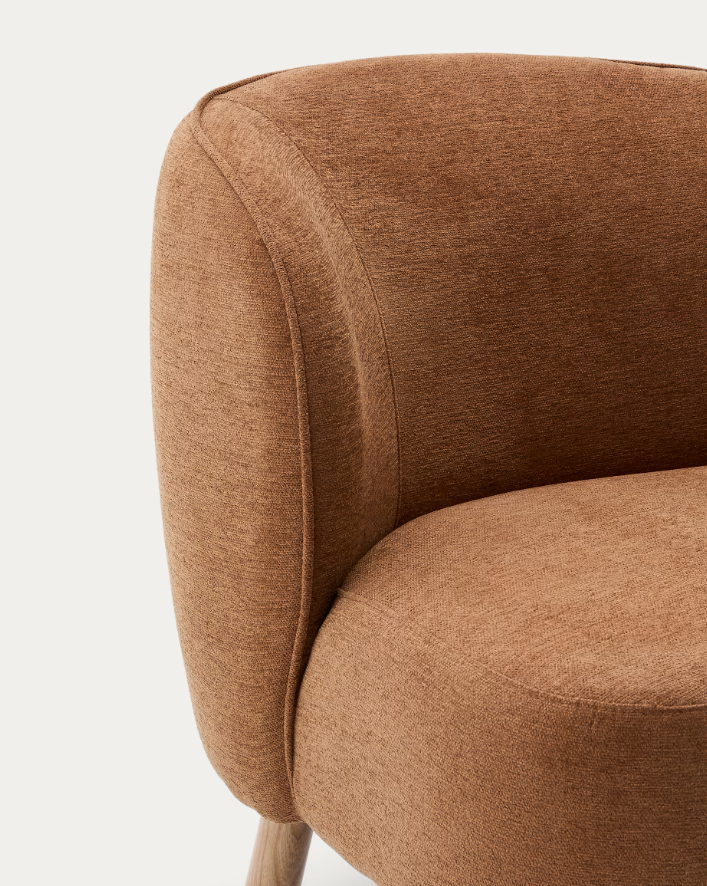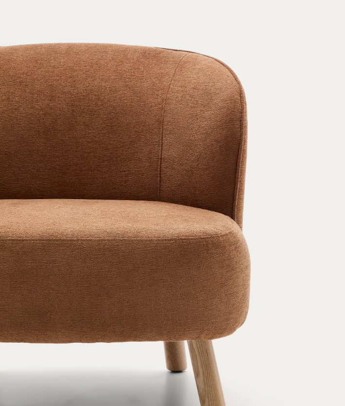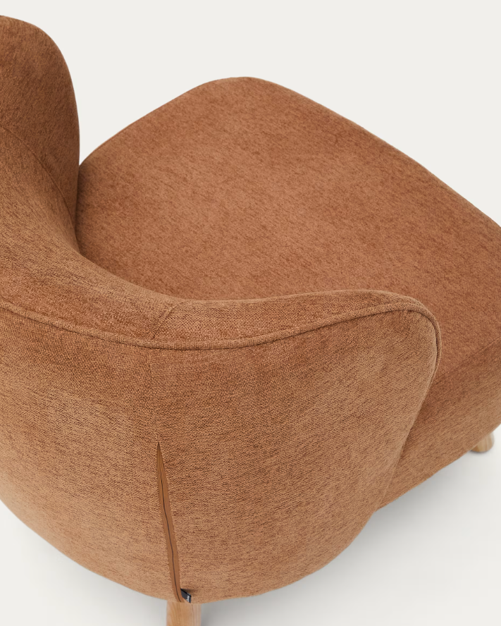 Poltrona Ulit chenille terracota e pés madeira maciça de faia acabamento natural