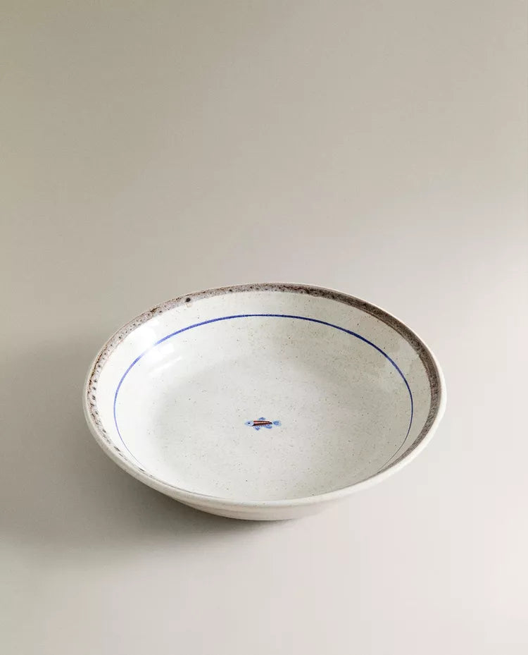 Prato fabricado em grés com design de peixe no centro. Tamanho 5 x 24 cm Read more