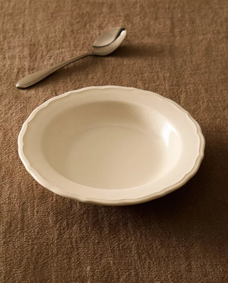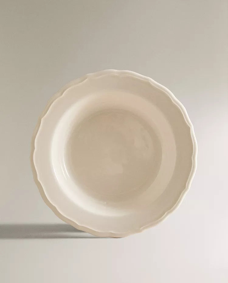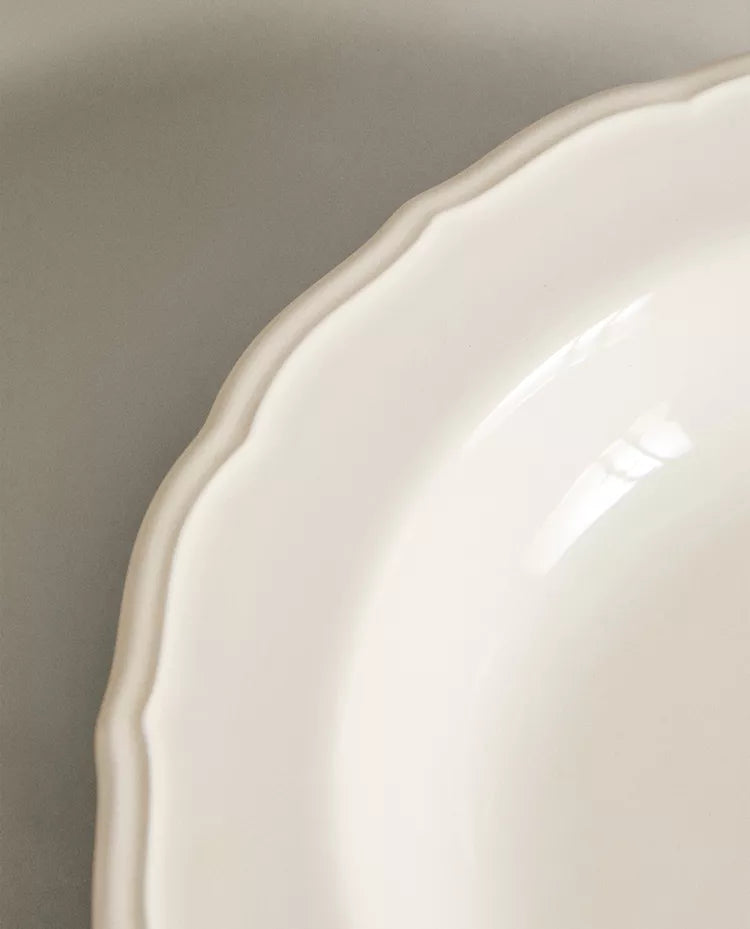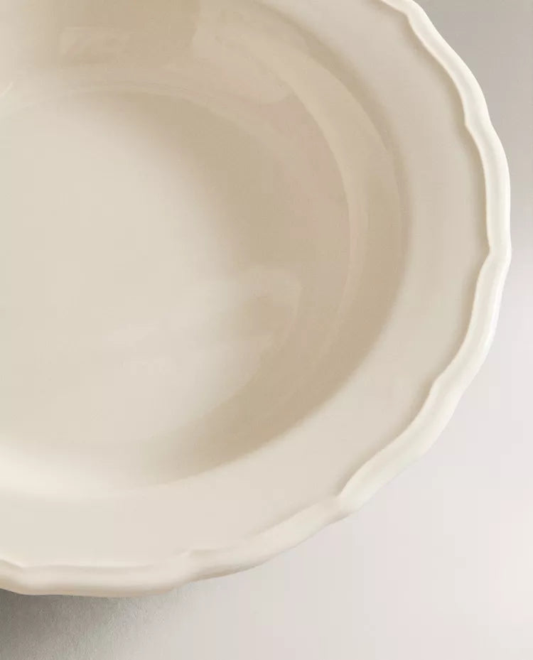 Prato fundo elaborado em louça de cor crua. Design liso com pormenor de relevo ornamental na borda. Altura Largura Profundidade... Read more