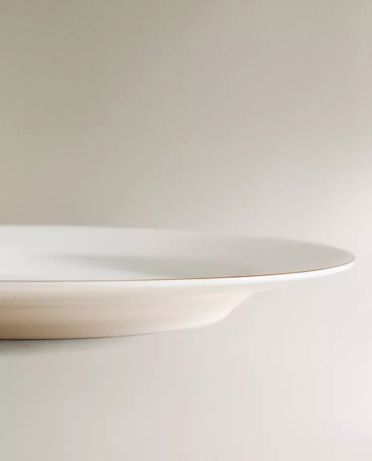 Prato raso elaborado em porcelana bone china, decorado com fio em contraste.A porcelana bone china caracteriza-se por um tom branco... Read more