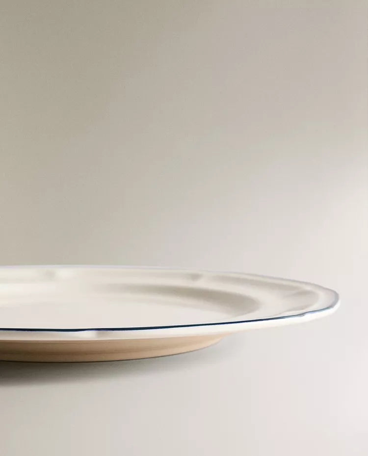 Prato raso fabricado em louça com pormenor de fio verde em contraste. Altura Largura Profundidade 26.8cm 26.8cm 2.1cm Read more