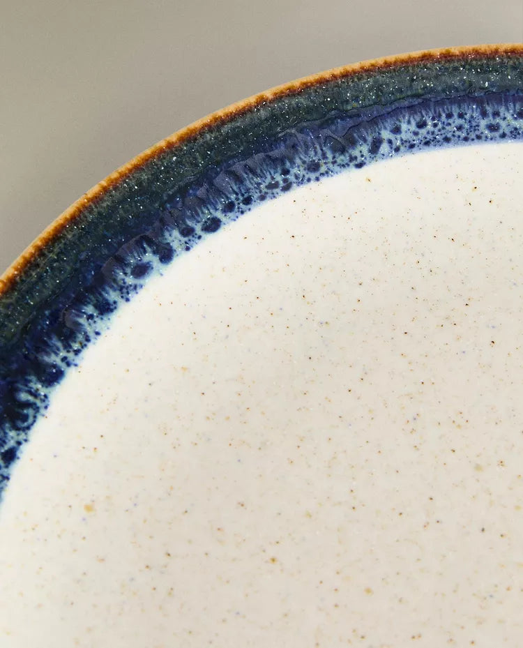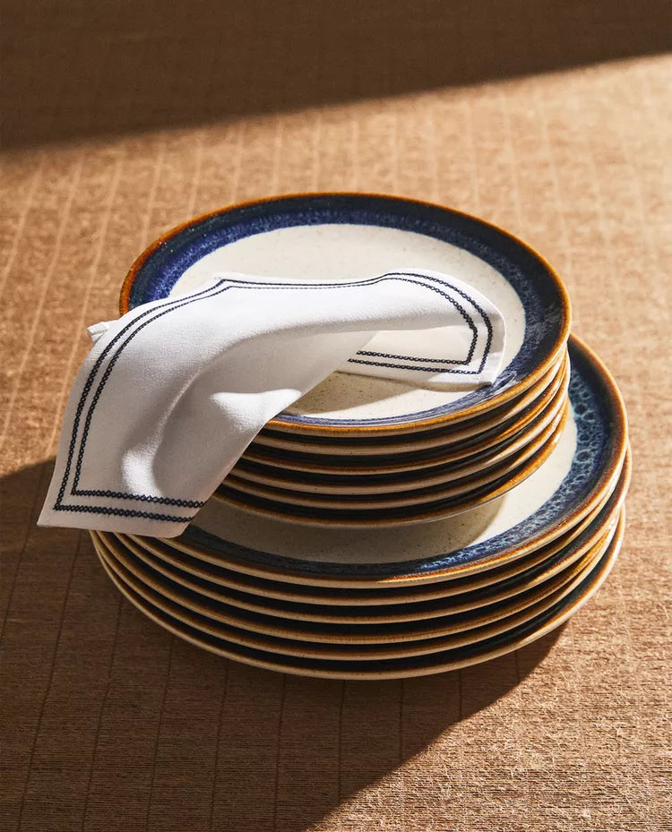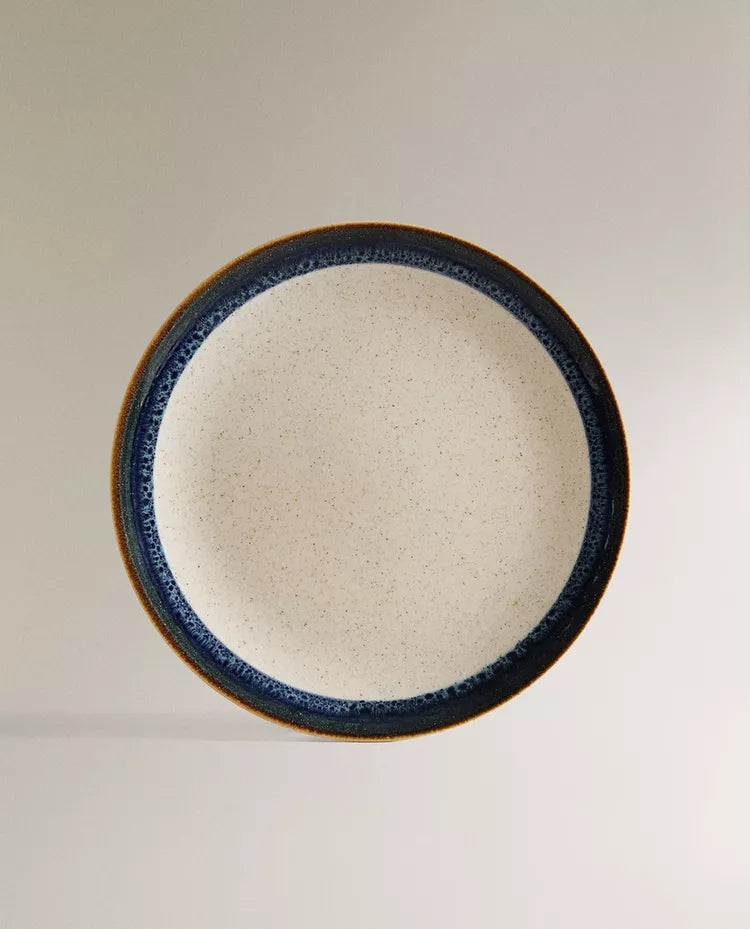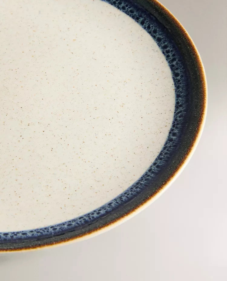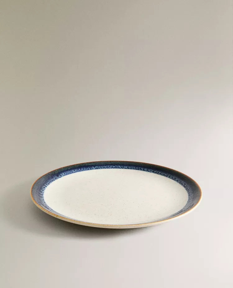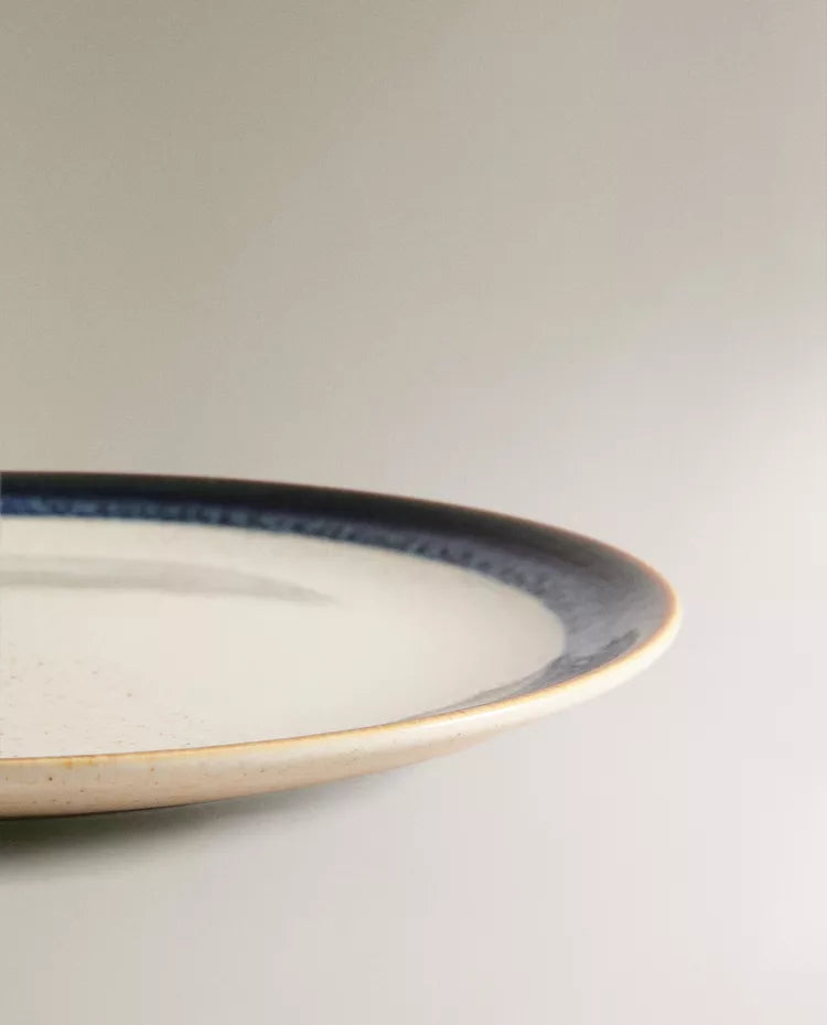 Prato elaborado em grés com pormenor linear com efeito antigo na borda. Altura Largura Profundidade 2.5cm 27.5cm 27.5cm Read more
