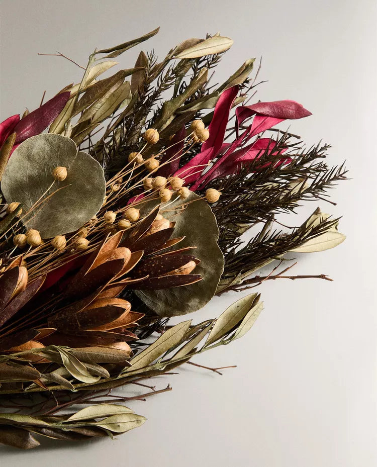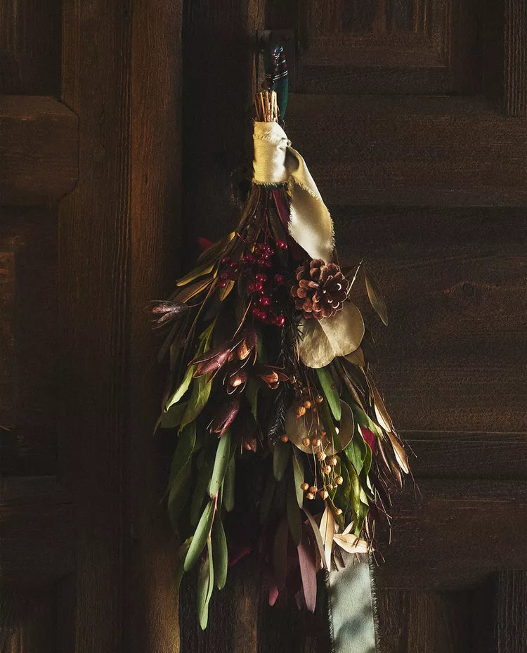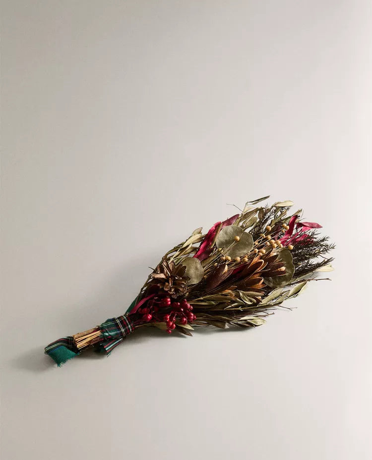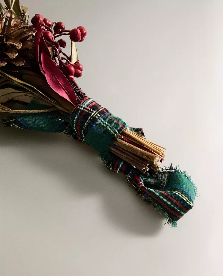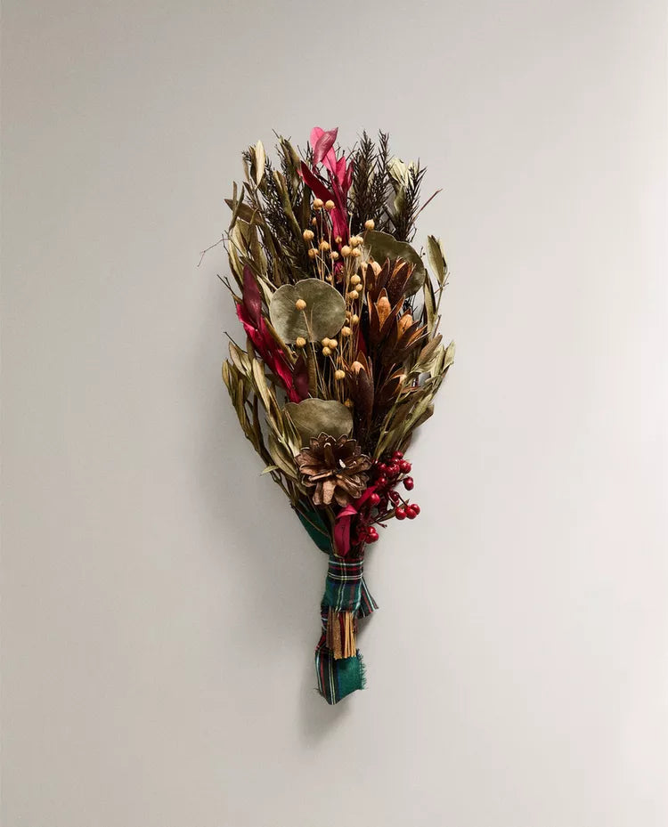 Ramo decorativo para o Natal, feito com ramos secos de oliveira e pinhas envolvidas com um laço de ratã. Tamanho... Read more