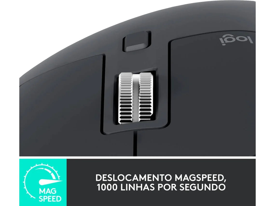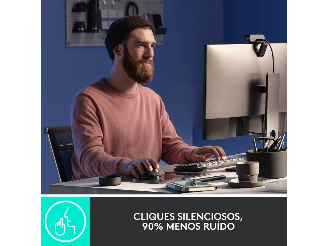 Os botões de clique silencioso oferecem uma agradável sensação táctil com 90% menos ruído de clique. O MX Master 3S inclui agora também um sensor óptico de 8K para a máxima resposta em qualquer superfície, até mesmo em vidro.