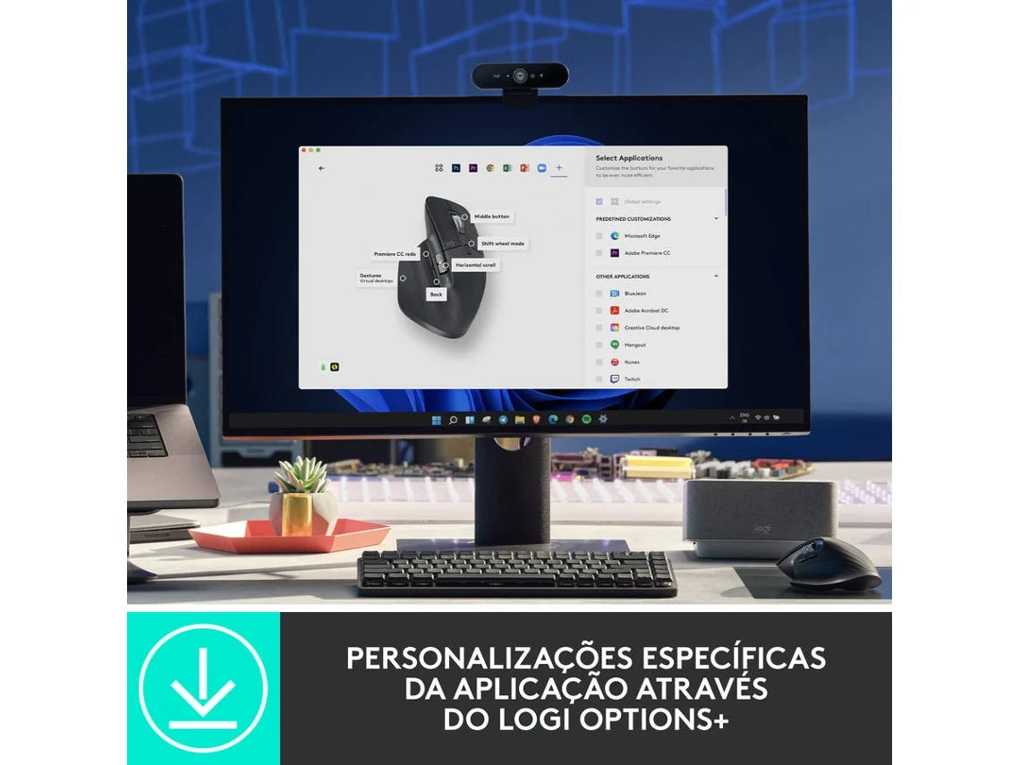 Software de personalização actualizado: Personalize os botões do Logitech MX Master 3S e otimize o seu fluxo de trabalho com perfis específicos da aplicação no Logi Options+.