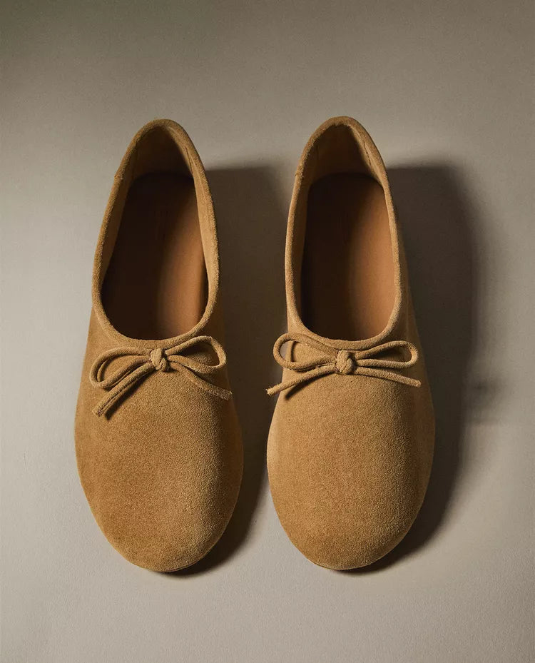 Sapatos rasos tipo sabrinas de pele com acabamento em croute e pormenor de laço à frente. Tamanho 35 36 37... Read more