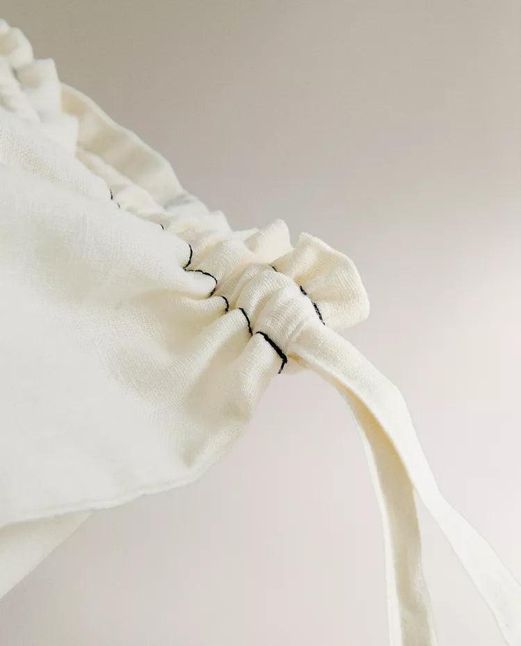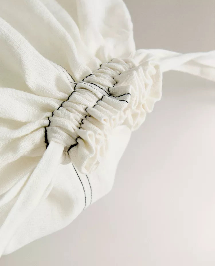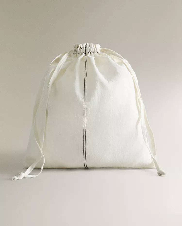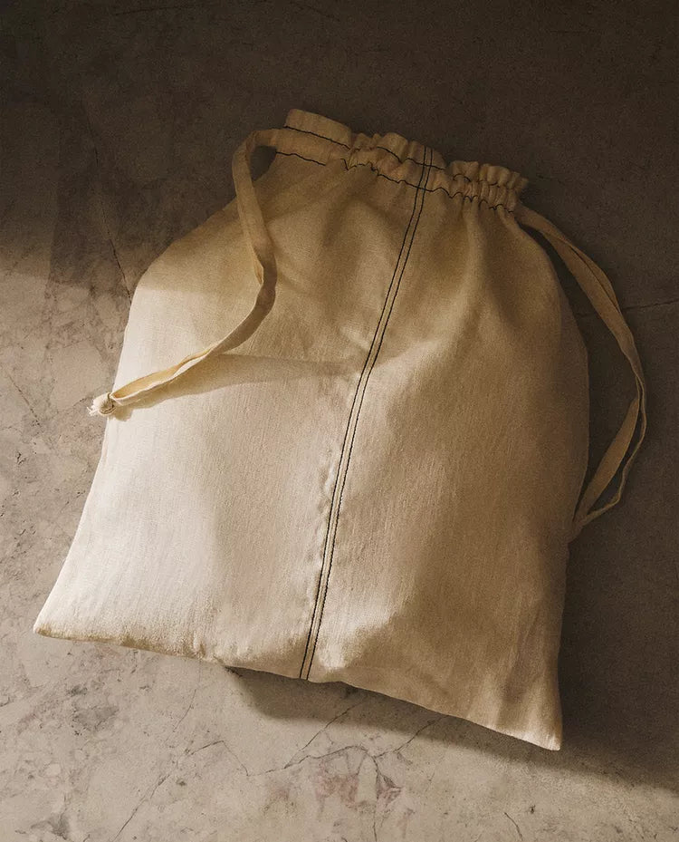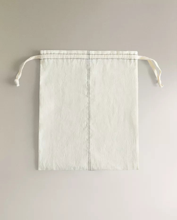 Saco confecionado em linho com pormenor de pesponto em preto a contrastar. Tamanho 45 x 38 cm Read more
