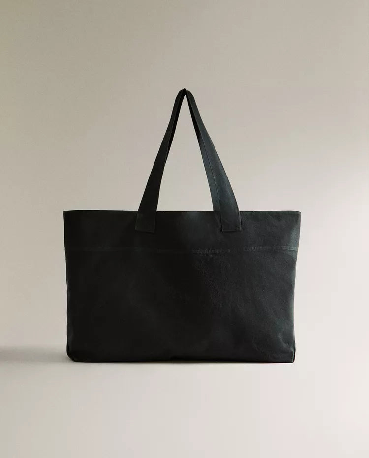 Saco de praia tipo tote bag em lona de algodão de cor lisa com alças compridas. Altura Largura Profundidade 71.5cm... Read more