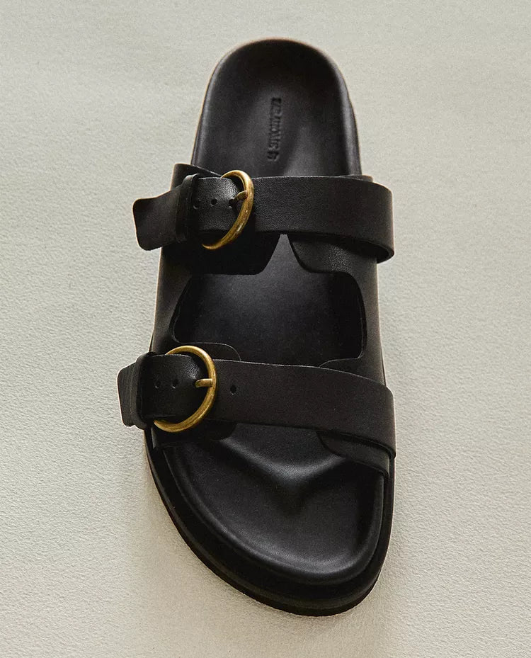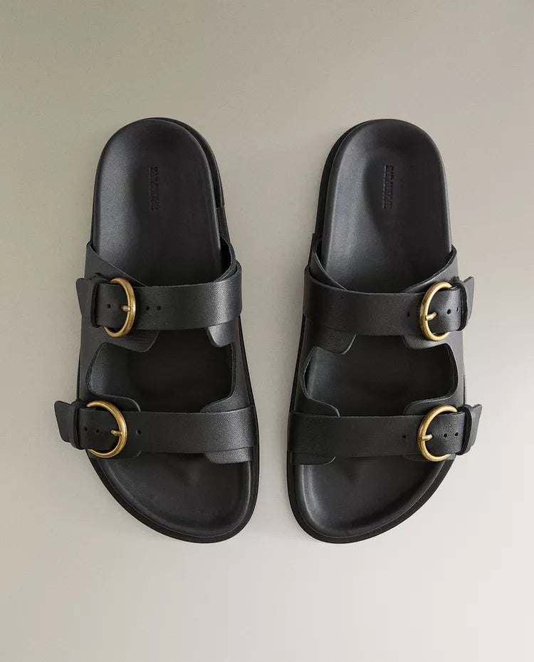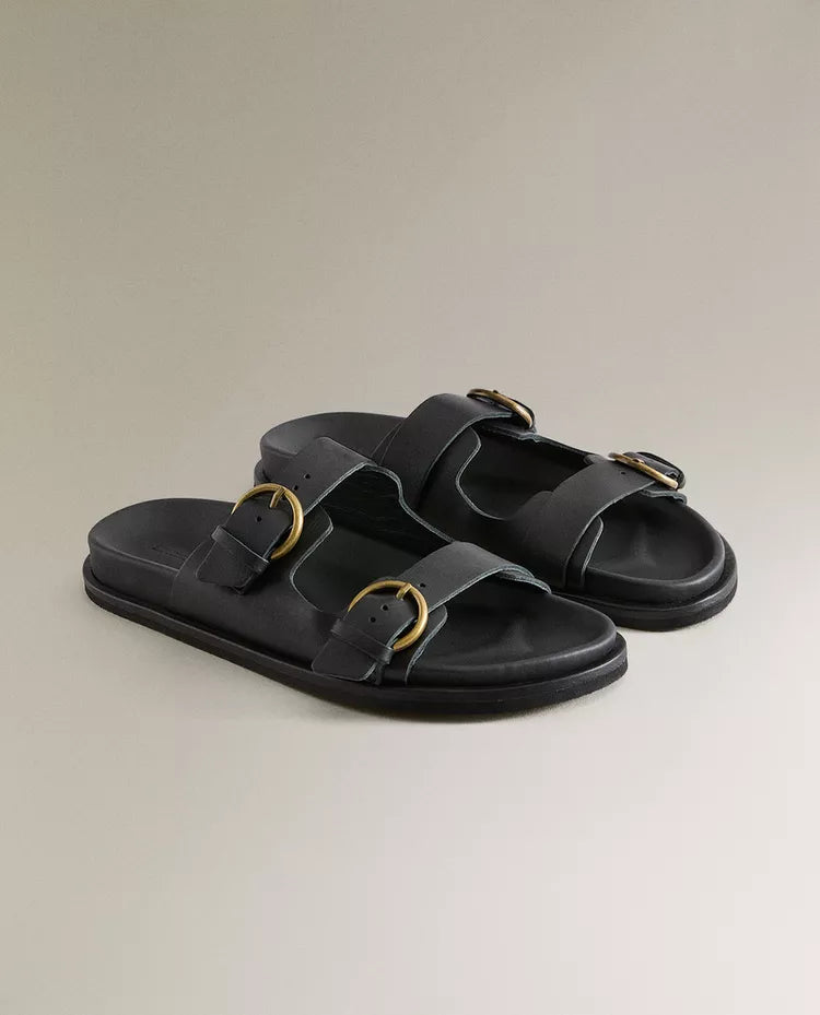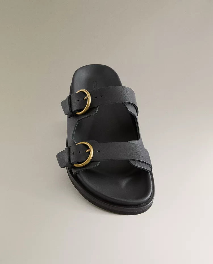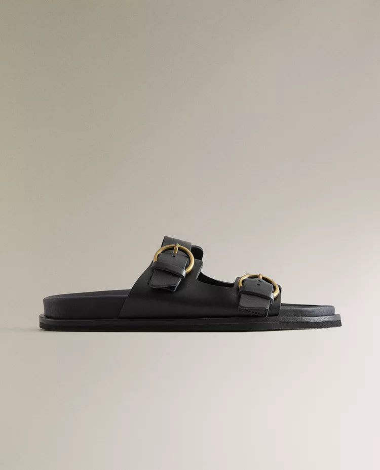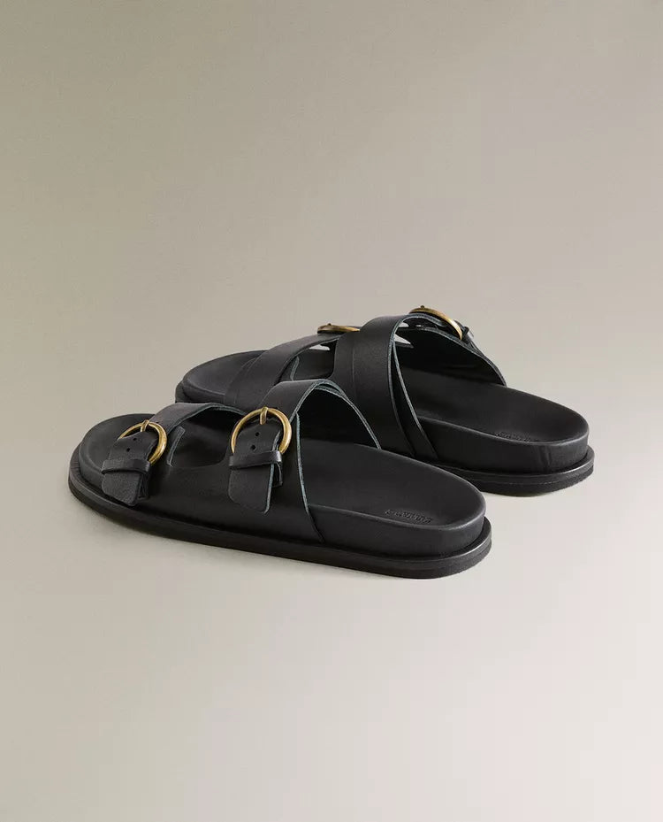 SANDÁLIA RASA DE PELE COM FIVELAS