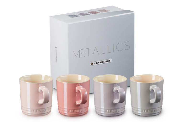Set 4 chávenas Mettalics tons pastel em cerâmica de grés