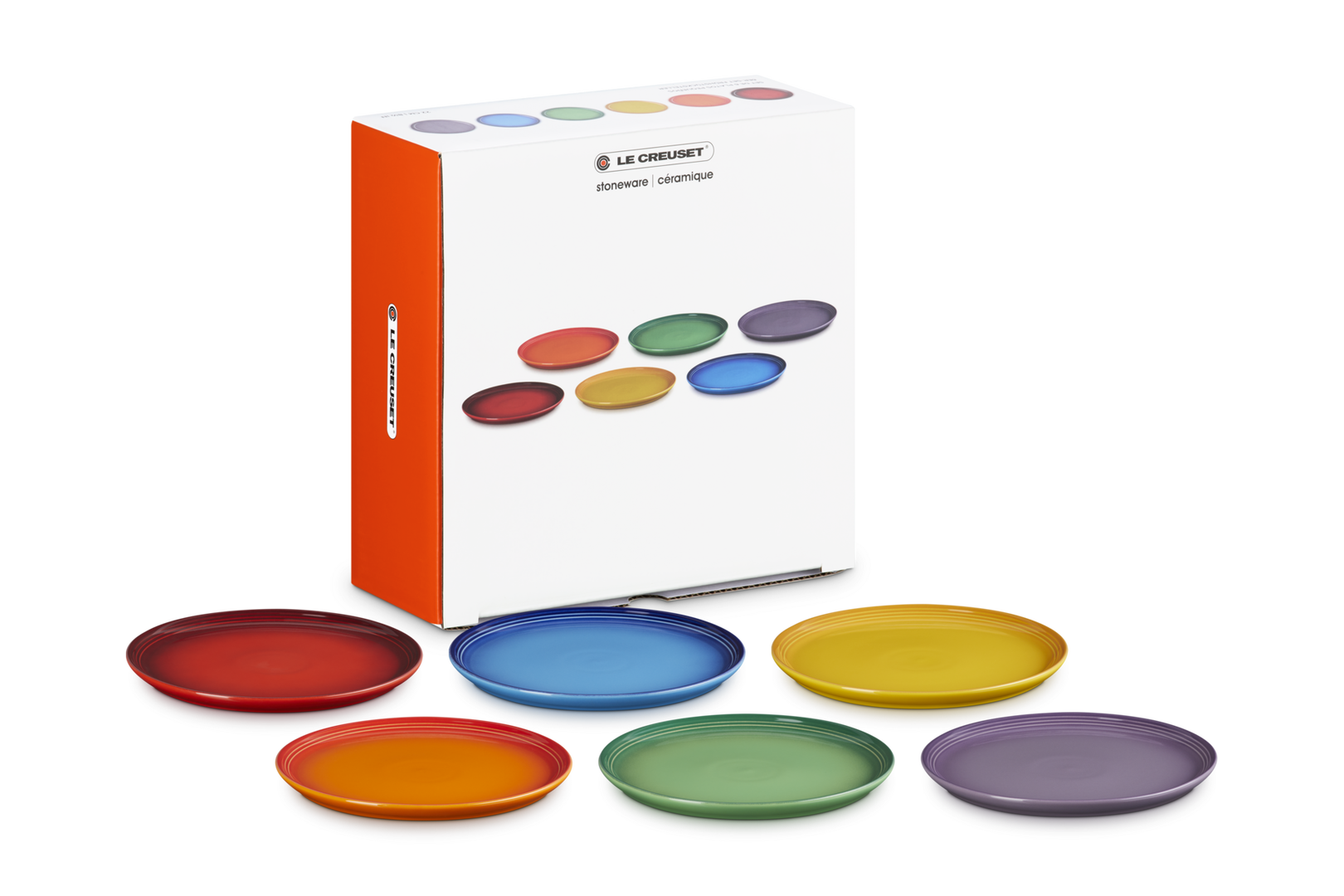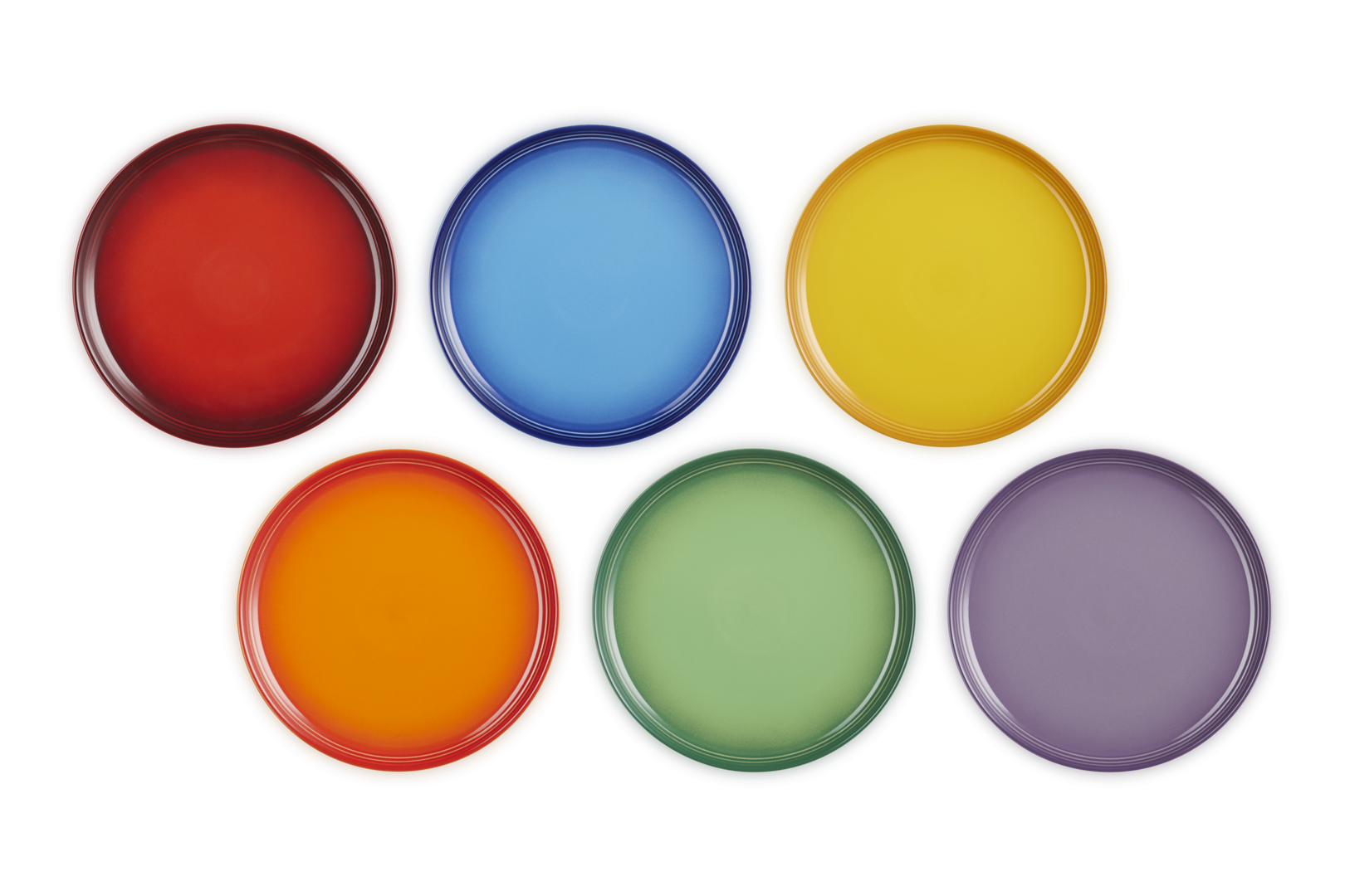 Deixe a cor brilhar em todas as ocasiões com este belo conjunto de seis pratos pequenos em cerâmica de grés. Com uma combinação radiante de tonalidades icónicas, cada prato confere um toque vibrante e moderno às refeições diárias. Perfeito para entradas, saladas ou doces. Cuidadosamente embalado em caixa, é um presente alegre e elegante para anfitriões, cozinheiros caseiros ou qualquer pessoa que goste de receber com um toque especial.