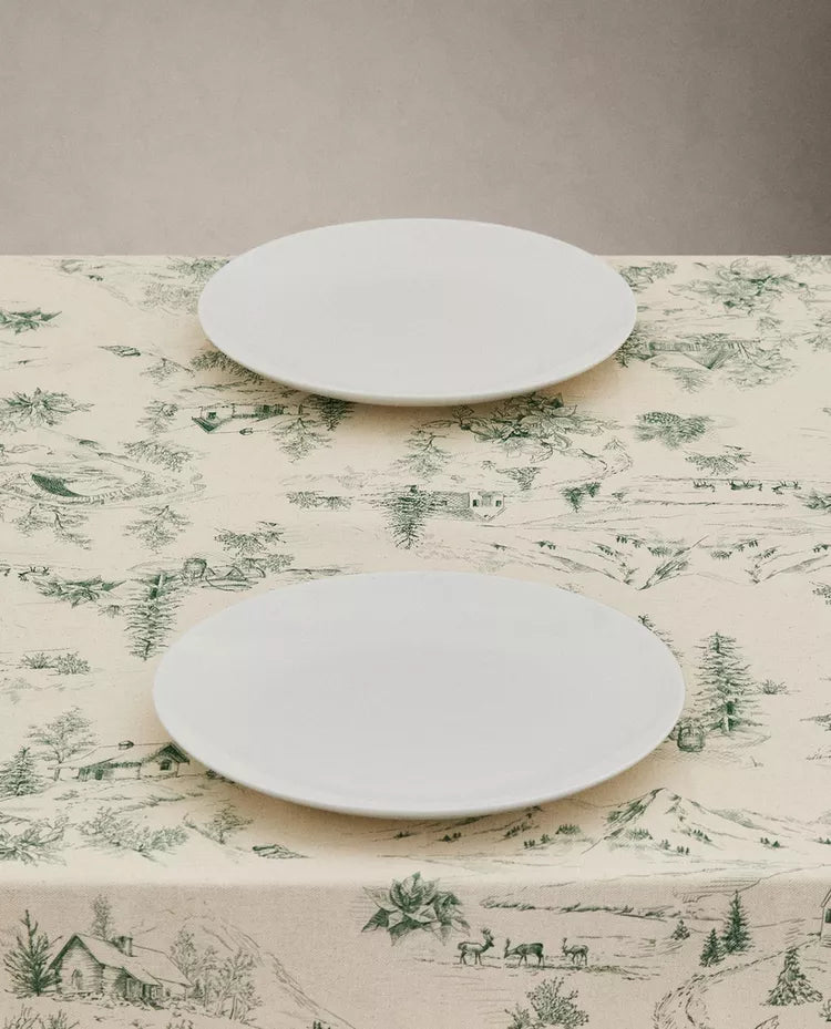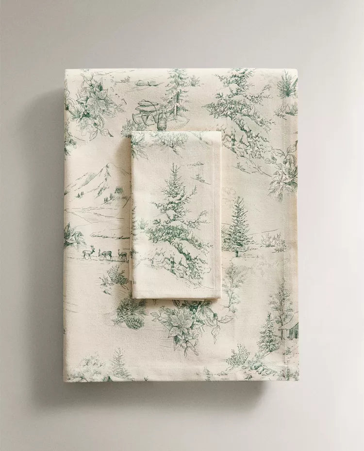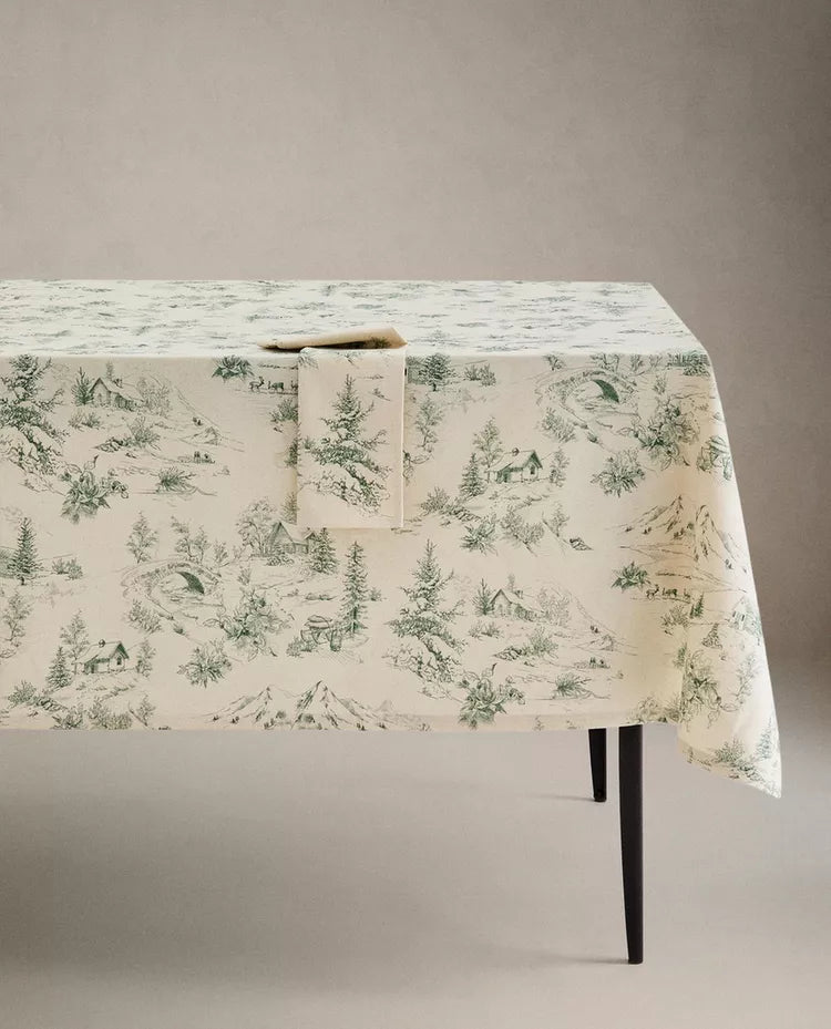 Toalha de mesa confecionada em algodão com design rural clássico tipo Toile de Jouy para o Natal. Tamanho De 6... Read more