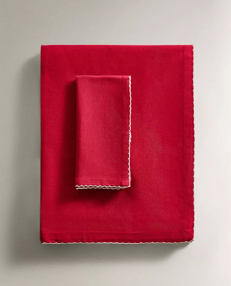 Toalha de mesa com design liso e pormenor de ondas nas bordas em contraste.Disponível em vários formatos:A medida de 220... Read more